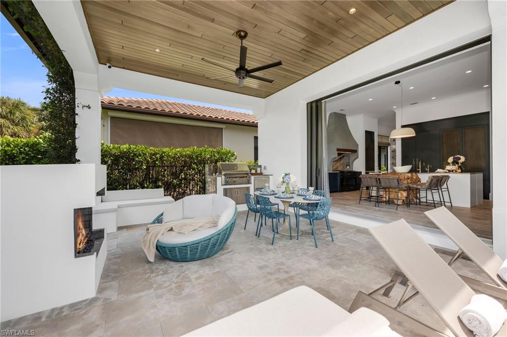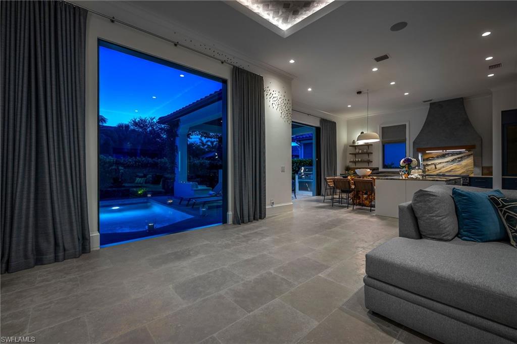 COMING BACK TO MARKET JAN. 2026. PLEASE SEE CONFIDENTIAL REMARKS. This residence has been completely reimagined in 2024 with a bespoke renovation that elevates every detail. A rare opportunity to own within one of Naples’ most exclusive golf course communities. New, impact, floor-to-ceiling picture window fills the interiors with natural light, illuminating the François & Co. French antique limestone in the main living areas and wide-plank, European White Oak floors from Spain in the bedrooms. Custom-designed millwork, bespoke window coverings by Holly Hunt and Hartmann & Forbes, and luxury lighting by Apparatus, Marset, and Hubbardton Forge enrich every space. At the heart of the home, the chef’s kitchen is anchored by Eggersmann bespoke cabinetry and dramatic Azul Zumaia Exotic quartzite counters. A Dacor appliance suite with gas range and custom-designed range hood, pairs with Brizo polished nickel fixtures, and even a thoughtfully-integrated pet feeding station! Armac Martin, custom brass hardware and grille work complete this remarkable space, which flows seamlessly into the living & dining areas, designed for both intimate evenings and elegant entertaining. The primary suite is a private retreat, with a Spa-inspired bath that redefines luxury. An expansive, walk-in steam shower and separate, dry sauna create a true wellness experience, while Eggersmann custom wall cabinetry and vanity cabinets provide refined storage. Custom, tri-level, back-lit mirrors and under-cabinet lighting add both beauty and functionality, while Illusion Exotic quartzite counters and imported towel warmers elevate the space to a new level of comfort. Each of the bathrooms reflect this same level of craftsmanship, while a bespoke laundry room continues the home’s theme of form meeting function, with Eggersmann cabinetry, terrazzo and limestone flooring, and abundant storage. The outdoor living areas have been transformed into a private sanctuary, featuring French limestone floors, a summer kitchen with Exotic Azul Zumaia quartzite, a cozy outdoor fireplace, and custom, cement benches with tailored cushions, offering effortless entertaining. Artificial turf provides year-round beauty with minimal upkeep, while professional lighting in both the front and back of the residence creates an enchanting atmosphere, day or night. Additional features include impact-resistant windows and doors, whole-house reverse-osmosis filtration system, tankless gas water heater, 2-car garage & golf cart garage, custom cabinetry, Tesla charging station, and custom metallic garage flooring. Grey Oaks is a unique community that is centrally-located with three golf courses, two clubhouses, resort-style pool, 30,000 sq. ft. Wellness Center, tennis, pickleball, exceptional dining, all just minutes from Naples’ pristine beaches, world-class shopping. This home truly represents a rare offering to have it all immediately, all within the sought-after community of Grey Oaks. Welcome home!