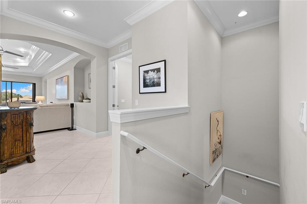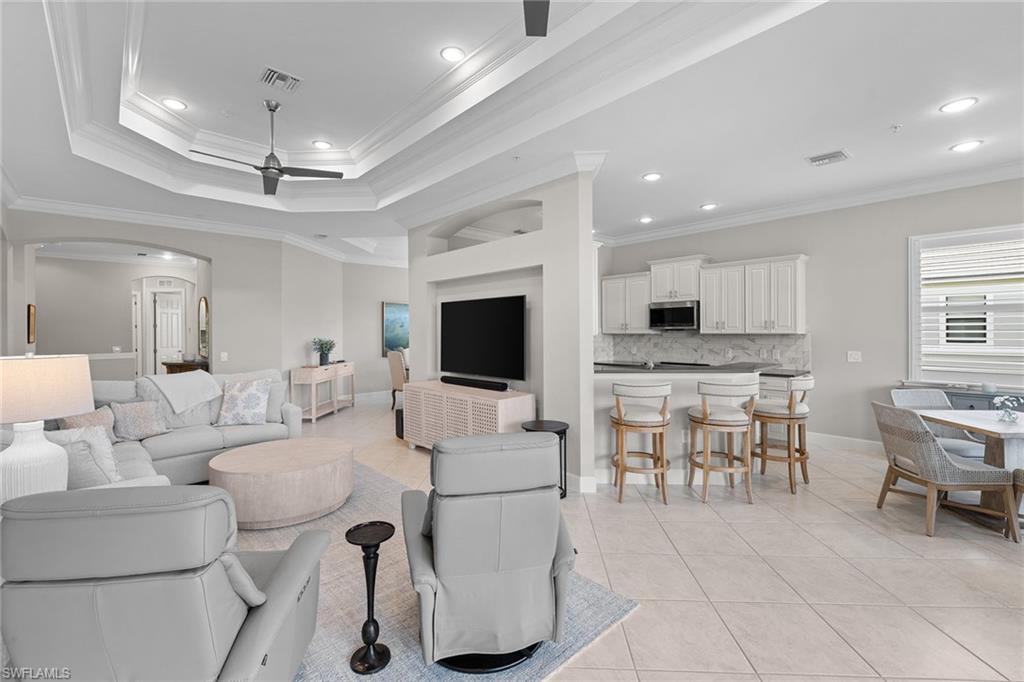 Offering coveted southern exposure views, this coach home offers three bedrooms plus a den and 2.5 baths. A full golf membership is deeded to this residence, offering immediate play with no waiting list at The TwinEagles Club. The interiors showcase volume ceilings, refined crown molding and plantation shutters, creating architectural definition and a sense of openness. Extensive recent updates include all new kitchen appliances with induction cooktop in November 2024, new washer and dryer in November 2023, new carpets in November 2024, no-see-um and Storm Smart lanai screens in spring 2024 and freshly painted interior walls and woodwork in February 2024. Overlooking the ninth hole of the Eagle Course, the lanai captures expansive views of its features. Full golf membership benefits include access to two championship courses designed by Steve Smyers and Jack Nicklaus, a resort-style pool and spa, a wellness and fitness center, Har-Tru tennis courts, pickleball, bocce and a clubhouse offering fine and casual dining. With more than 1,100 acres of natural preserves and walking trails, TwinEagles balances championship golf with an authentic Florida lifestyle.