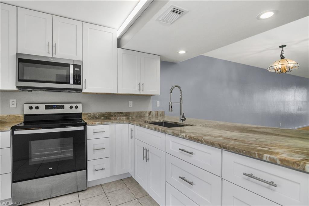 Welcome to your dream condo close to Beautiful Downtown Naples and Downtown Naples' Beach! This stunning 2 bedroom, 2 bath condominium with Open Floor Plan and Split Bedrooms offers a remodeled kitchen with upgraded Granite Countertops, sleek newer modern Appliances and ample storage space with plenty of drawers and open to a large Great Room for Entertaining! Both Bathrooms have been tastefully updated with new vanities topped off with Beautiful Upgraded Countertops providing a spa like retreat! The condo also features a large convenient outdoor storage for bicycles or beach toys which is perfect for enjoying Florida's sunny lifestyle. The community is complete with a Clubhouse, Resort-Style Pool, and a lovely walking trail ideal for relaxing, and tennis and pickleball courts for the active enthusiast! 1 pet is permitted!