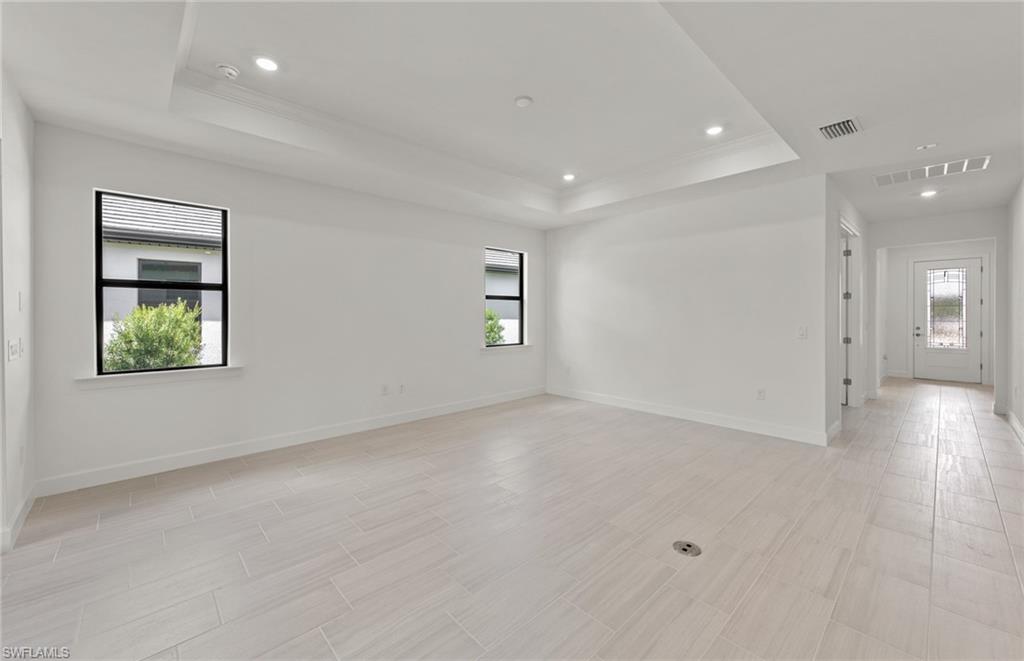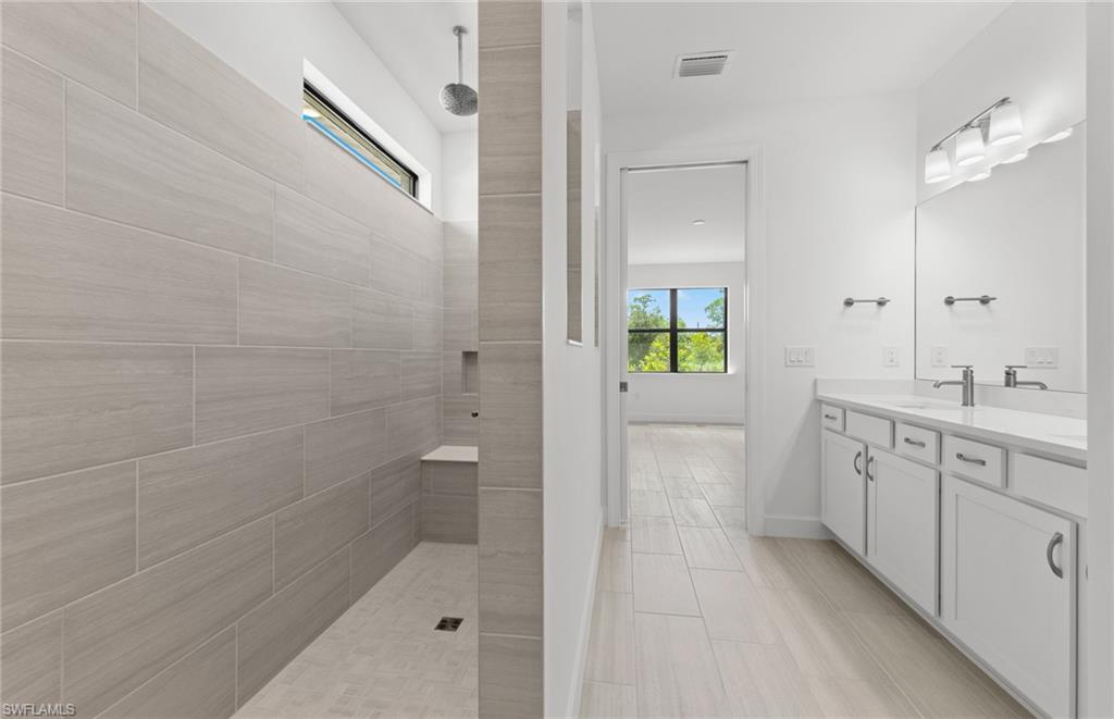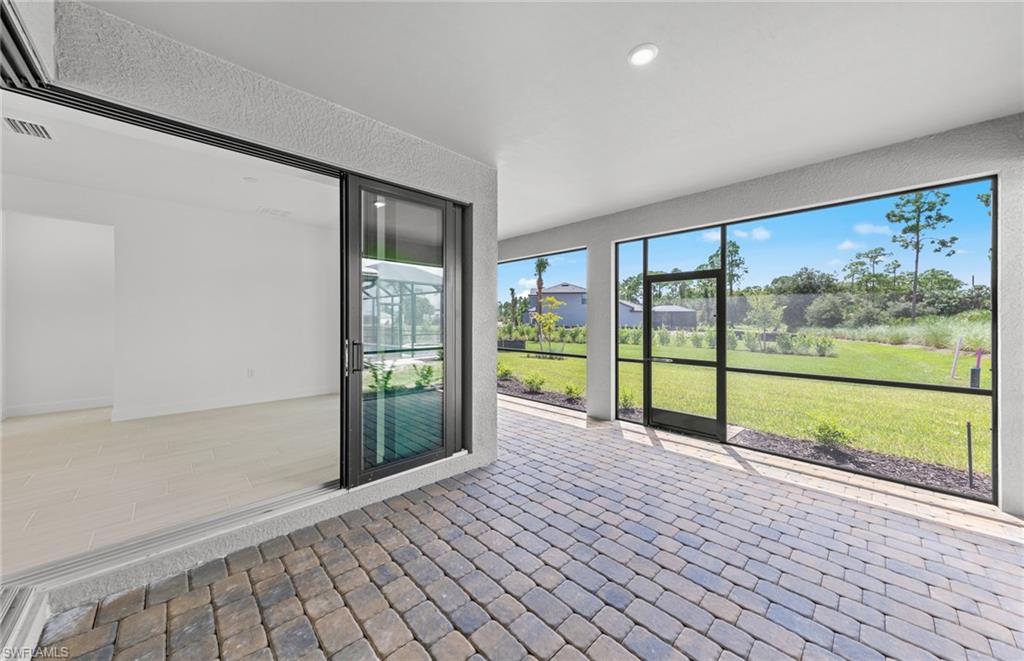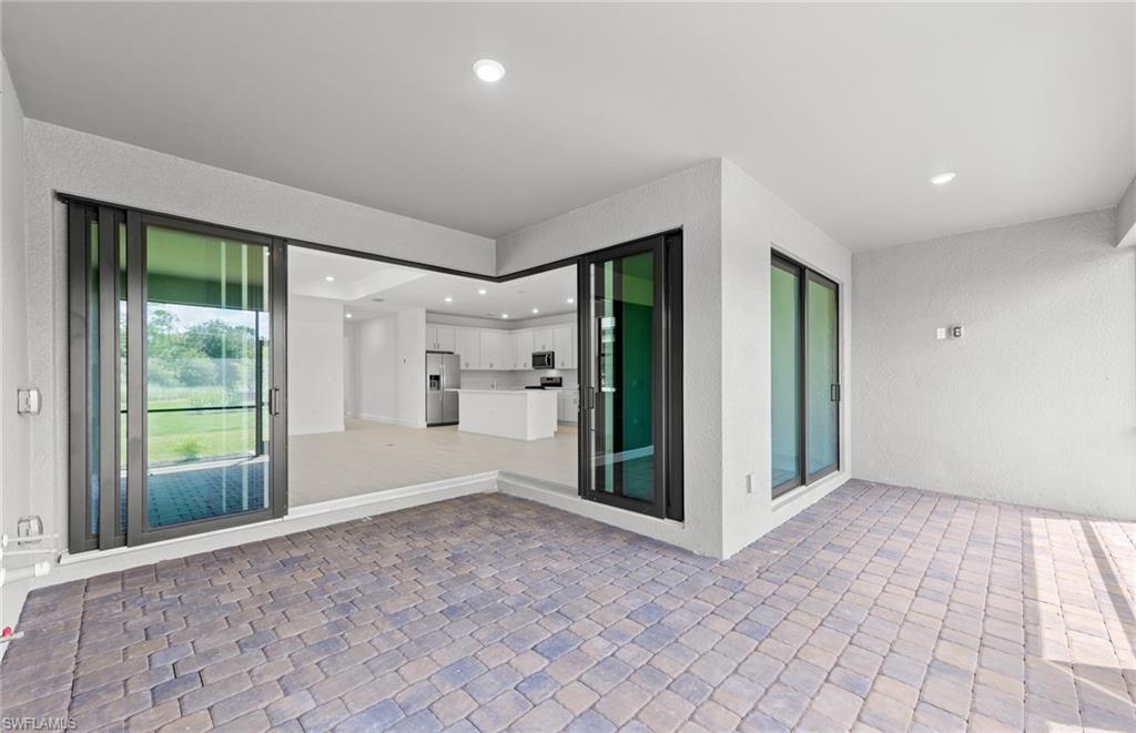 This stunning Mystique Plan Home located in highly desirable Naples in the New Construction Community of Terreno by DiVosta with picturesque golf course and preserve views will captivate you! This beautiful, single story home features three spacious bedrooms, three luxurious bathrooms, an enclosed flex room, and a two-car garage with a 4’ extension and an epoxy finished floor. The welcoming kitchen boasts bright white cabinets, an amazing quartz island, sparkling quartz countertops, an elegant backsplash, and stainless steel appliances-perfect for entertaining! The inviting gathering room features zero corner sliding glass doors and an extended covered lanai which includes outdoor kitchen pre-plumbing ideal for socializing and cooking meals with friends! Some other highlights of this home include a sliding glass door at the café, gleaming tile floors throughout, and an upgraded laundry room with cabinets. The spacious primary suite is the quintessential place to unwind and rest at the end of the day. The primary suite includes a luxurious primary bathroom with a walk-in shower, dual sinks, pristine, white cabinets, and gorgeous quartz countertops. Escape into your own private oasis in this impeccable primary bathroom! Terreno’s fantastic resort like amenities recently opened. These amenities include a 15,000 sq ft grand clubhouse with a large community room for events, a catering kitchen, an exercise studio, 8 pickleball courts, 2 tennis courts, dog park, playground, firepit lounge, resort style pool, lap lanes, heated spa, full service restaurant, bar, and grill, food-truck pickup, 18 hole public golf course and so much more! This hidden gem will delight you-schedule a tour soon!
