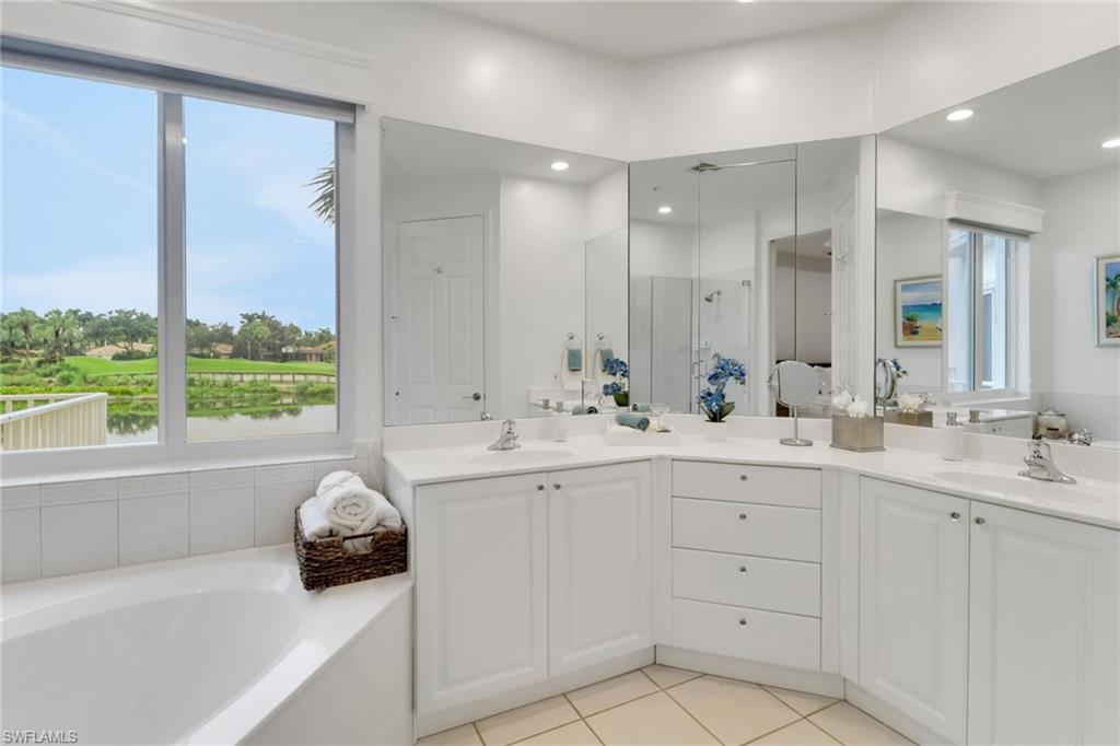 Enjoy breathtaking views of the 9th hole of the Pelican Marsh golf course and serene lake from your PRIVATE OUTDOOR TERRACE, making it a rare and desirable find. This beautifull first-floor condo offers a luxurious lifestyle with three spacious bedrooms and an attached two-car garage. The open floorplan flows seamlessly, perfect for entertaining family and friends. The eat-in kitchen features granite countertops, stainless steel appliances, decorative backsplash, pantry and a breakfast bar that opens to the great room. The large master suite featuring tray ceiling, walk-in closet, golf course/lake views, and en-suite bath with a luxurious soaking tub and walk-in shower. Clermont has its own private pool and clubhouse for its residents. This condo is a short walk to the Pelican Marsh Community Center where you can enjoy a state-of-the-art fitness center, spa services, on-site fitness trainers, and various social programs. The "Court Side" restaurant offers alfresco dining and TV’s for watching your favorite sports. Engage in an active sports community with access to 8 lighted Har-Tru tennis courts, 6 pickleball courts, and 3 bocce courts where you can participate in inter-club leagues and social mixers. Pelican Marsh is the perfect blend of luxury, comfort, and an active lifestyle. It is also known for its stunning landscaping with 133 acres of nature preserves that provide a habitat for diverse wildlife, including eagles and wading birds. Residents can take advantage of the Cocohatchee Strand trails for biking, jogging, or leisurely strolls through the beautiful natural environment. Pelican Marsh simply has it all, exceptional amenities and a prime location, 1.5 miles from pristine Gulf beaches, close to Mercato, Whole Foods and numerous shopping and dining options.