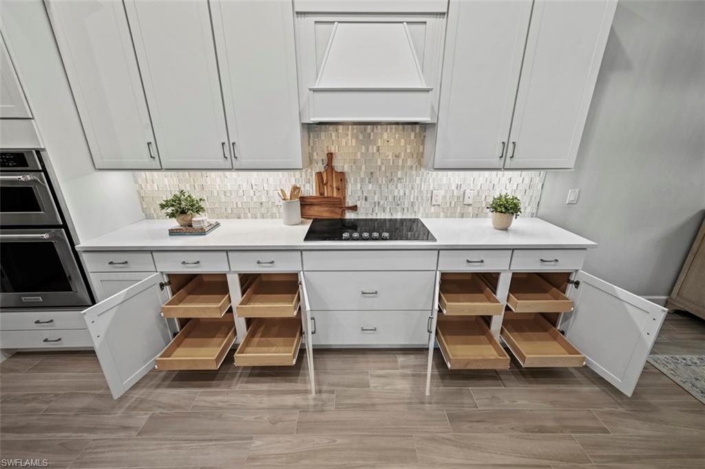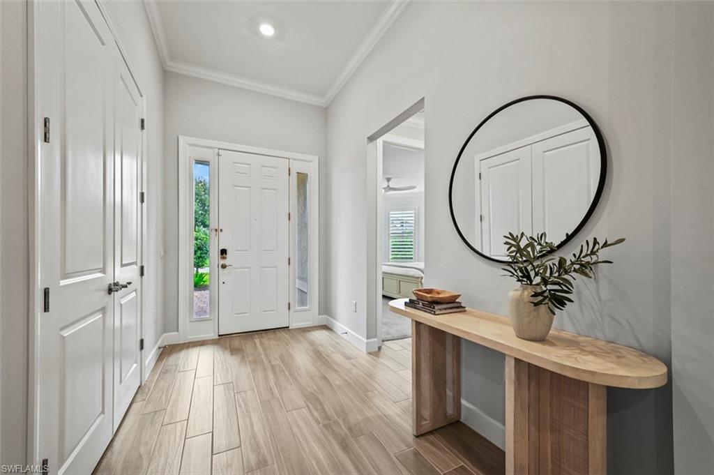 Welcome to a home that truly has it all—style, security, and peace of mind. Offering 2,488 sq ft with 3 bedrooms + den, 3 full baths, and a 3-car garage, this property is as functional as it is beautiful. The open floor plan is filled with natural light and upgraded finishes. The gourmet kitchen boasts an oversized quartz island, white and gray soft-close cabinetry, pull-out shelving in every lower cabinet, reverse osmosis WATER FILTRATION, and a walk-in pantry with built-in organization. Wood-look tile plank flooring, crown molding throughout, and plantation shutters add timeless elegance. Every closet in the home has been thoughtfully designed with CUSTOM STORAGE. Step on the lanai to your private preserve view with a sparkling pool, spa, and sun shelf—perfect for both relaxing and entertaining. And, with no home directly across the street, the setting feels even more open, quiet and private. This home also provides unmatched security and comfort: IMPACT WINDOWS AND SLIDERS, an electric roll-down shutter to protect lanai furniture, and a whole-house Generac GENERATOR for uninterrupted power. A spacious laundry room adds even more convenience, featuring abundant cabinetry for storage and a long countertop for folding and organization. The garage features overhead storage, an organization system and an epoxy flooring! Completely move-in ready and loaded with upgrades, this home delivers the perfect blend of beauty, convenience, and confidence. At this price, it won’t last long.