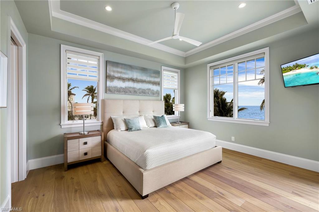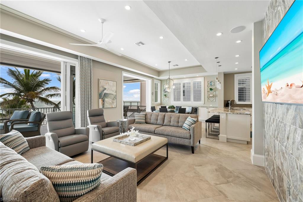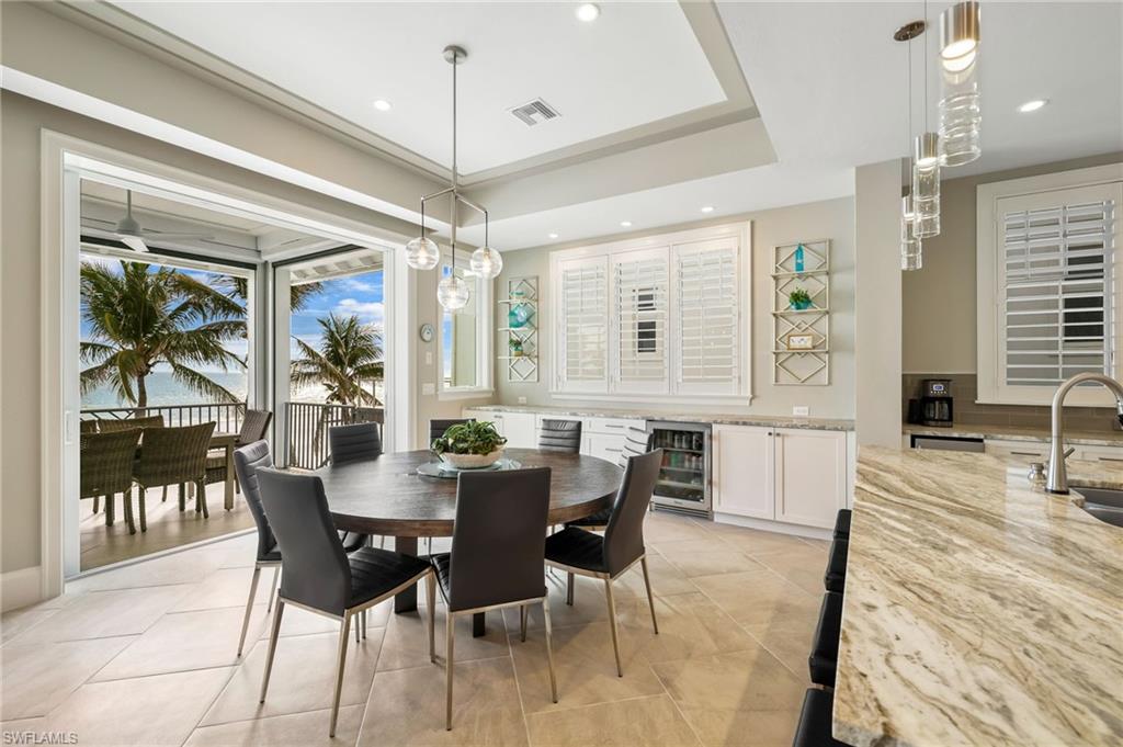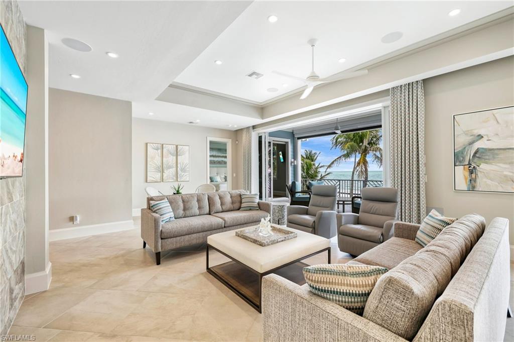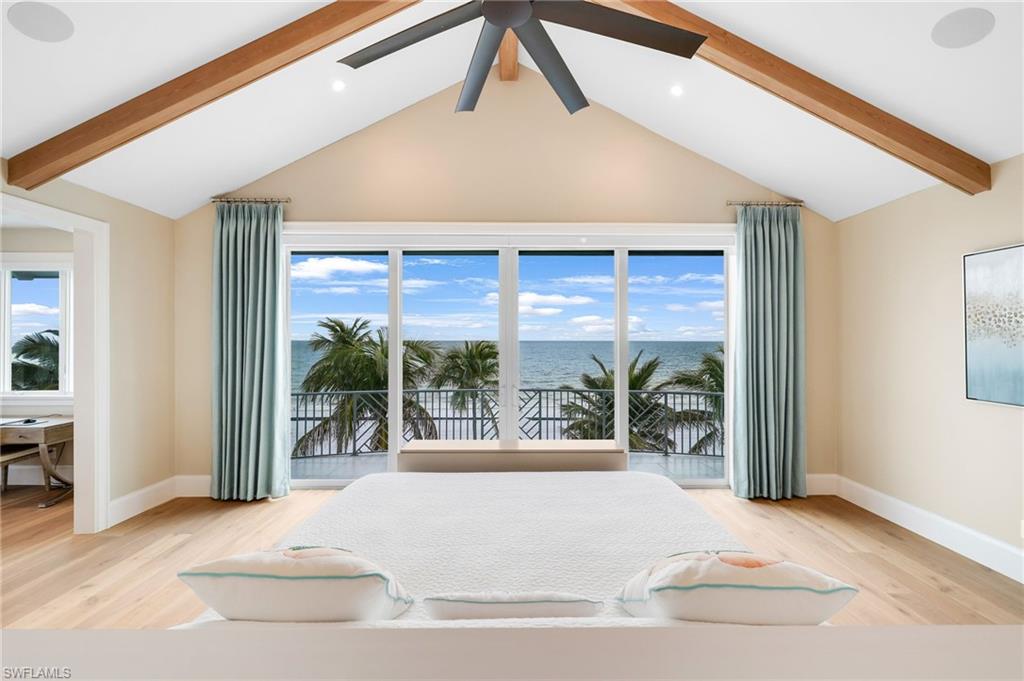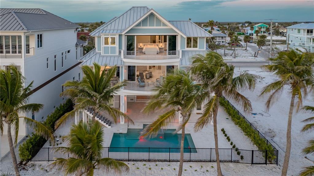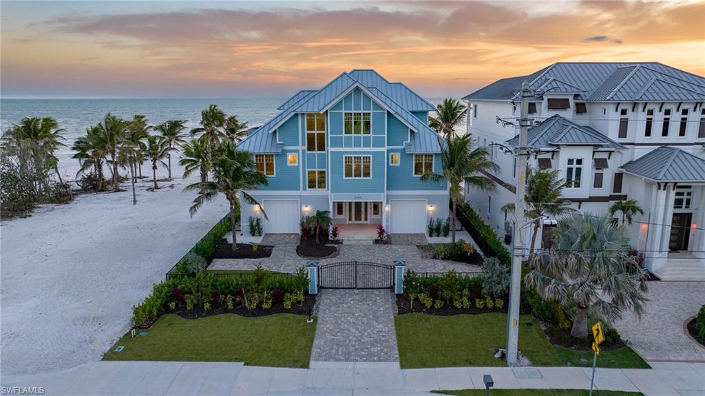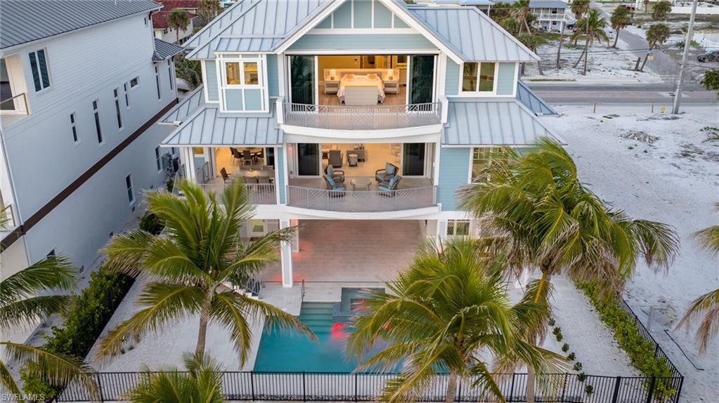 Gulf Front Glamour Meets Modern Sophistication! Welcome to a Potter Homes masterpiece—an extraordinary three-story Gulf-front oasis where panoramic water views define every level. Designed with uncompromising craftsmanship, this residence is both a private retreat and an entertainer’s dream. With five bedrooms, five and a half baths, plus a first-floor den, the home offers expansive open living spaces that blur the line between indoors and out. Multiple balconies frame the Gulf like living art, while the saltwater pool and spa create a private resort experience surrounded by swaying palms and endless shoreline. The top-floor master suite redefines luxury with sweeping views, a private sitting room, wet bar with fridge, custom dressing room, spa-inspired bath, and exclusive balcony access. Thoughtful details such as a recessed TV cabinet and a second laundry area enhance both comfort and convenience. The four guest rooms include a luxurious main-level VIP guest retreat with serene Gulf views. Each guest bedroom features its own en-suite bath, providing privacy and comfort for visiting family and friends. Every finish has been intentionally curated—from sleek designer touches to refined architectural elements. Smart-home technology places control of gates, garage doors, security, cameras, Lutron lighting, HVAC, and pool heating in the palm of your hand, ensuring effortless arrivals. A whole-home Sonos system further enriches the living experience. Perfectly located in a quiet residential neighborhood yet close to restaurants, Publix, and just a mile and a half from Times Square, the property offers the ultimate balance of tranquility and convenience. This home embodies the pinnacle of coastal luxury—sophisticated, inviting, and unforgettable. It’s the ahhh moment every time you breathe in the salt air and take in the view…the view…the view.