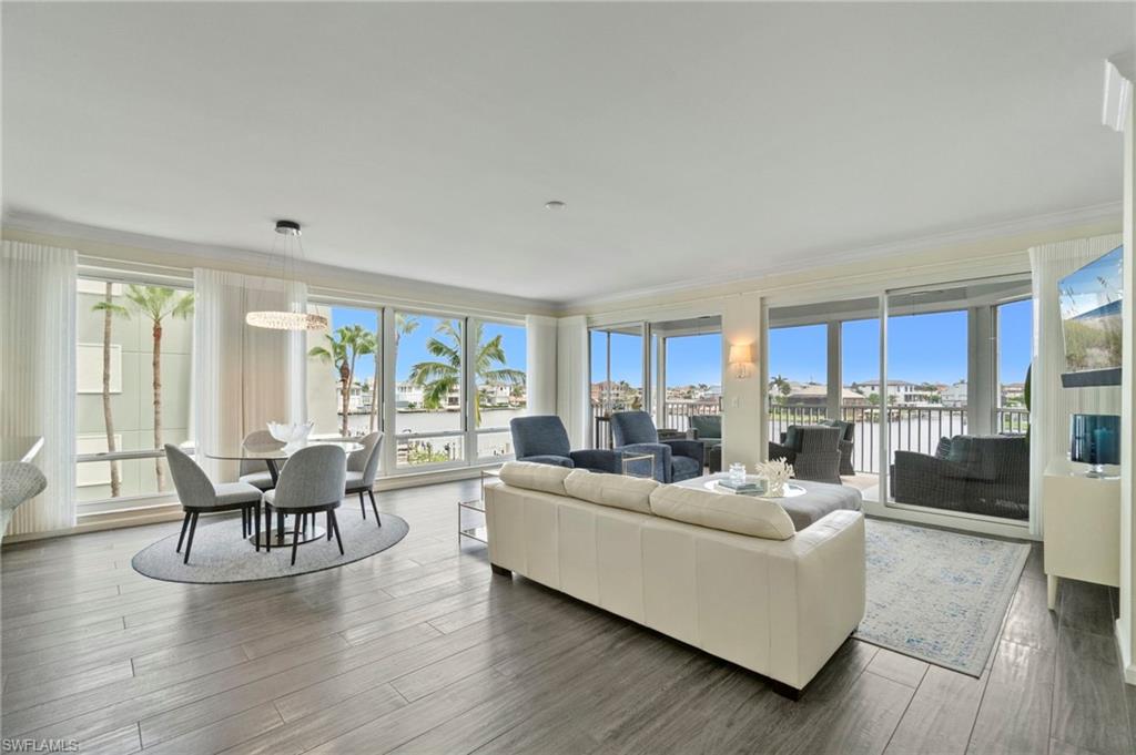 Experience luxury coastal living in this rarely available Le Dauphin end unit condo, offering sweeping panoramic views of Vanderbilt Bay with deeded beach access. The unit also has access to a private beach club. Beautifully renovated and meticulously maintained, this spacious 3-bedroom, 2.5-bathroom residence spans 2,245 square feet and is filled with natural light, thanks to floor-to-ceiling windows and an open-concept layout designed to capture the beauty of the surrounding landscape. This residence features three private outdoor terraces, each offering distinctly different views — from breathtaking sunrises over the bay to peaceful evenings by the Gulf. The gourmet kitchen is a showpiece, equipped with stainless steel appliances, quartz countertops, designer finishes, and bar-top seating for six, perfect for both casual dining and entertaining. Elegant ceramic tile runs throughout the main living areas, while the primary bedroom is a tranquil retreat with plush carpeting, a large walk-in closet, and a spacious ensuite bathroom featuring a frameless glass shower and dual vanities. Le Dauphin is a boutique waterfront community offering exceptional amenities, including a private heated pool overlooking the bay, tennis courts, boat slips, an outdoor kitchen and dining area, and a fully renovated lobby. Pet lovers, services animals allowed upon request with proper documentation. Residents also enjoy secure indoor garage parking and additional air-conditioned storage space. For peace of mind, the building has received a satisfactory structural milestone inspection, certified through the year 2034. Located adjacent to the prestigious LaPlaya Beach and Golf Resort, this home is within walking distance to upscale waterfront dining at Baleen and The Turtle Club, and just minutes from the shops, restaurants, and nightlife of Mercato. This is a rare opportunity to own a luxurious coastal residence in one of North Naples’ most desirable and prestigious neighborhoods — ideal as a full-time home or a refined seasonal getaway.