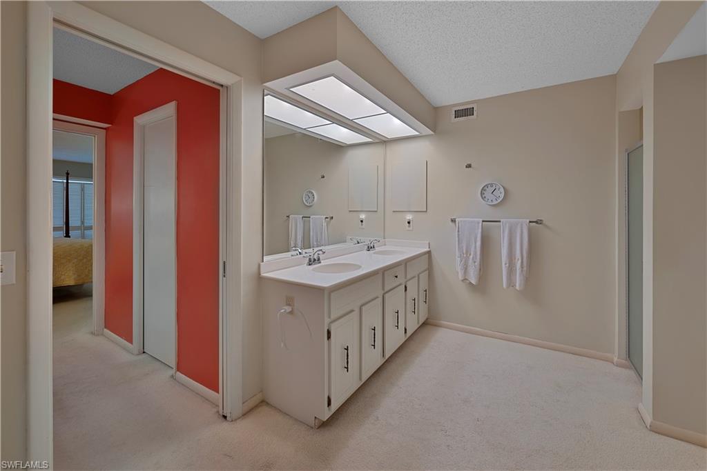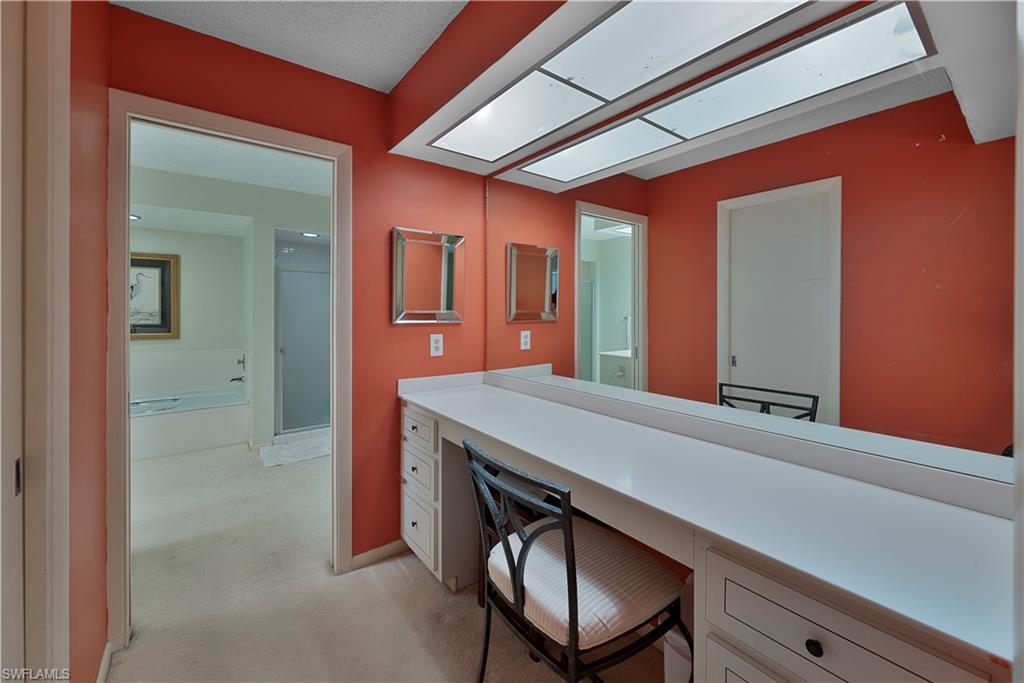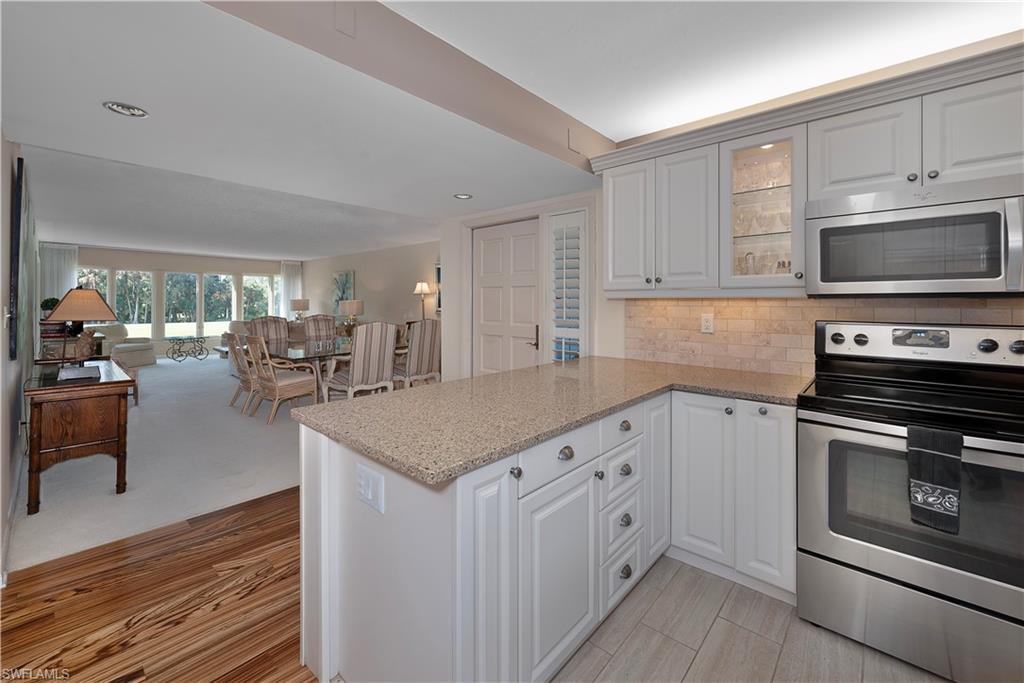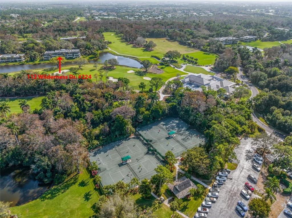 Motivated Seller, Bring Offers! Welcome to Wilderness Country Club, your paradise in the heart of Naples. Overlooking the picturesque 18th fairway, this 2-bedroom/2-bathroom unit is perfect for those seeking convenience and proximity to Wilderness’ ultimate amenities. Experience the luxury of Wilderness Country Club, a sanctuary of elegance and exclusivity. Gain immediate golf membership with no waiting list and have access to unlimited golf on an 18-hole Arthur Hills course. This unique and spacious, over 1900 sf, open plan second-floor condominium is located in close proximity to the clubhouse, 1st tee, and saltwater pool. It features expansive front-to-back views, giving the unit beautiful natural light throughout the day. The updated kitchen is outfitted with custom white raised cabinetry, neutral-toned quartz countertops, stainless steel appliances, and plantation shutters. The primary suite has a full walk-in closet, dressing area with makeup bar/office space, and a full bathroom with double sink vanity, oversized soaking tub, and walk-in shower. The guest bedroom and full guest bathroom includes an oversized vanity and tub/shower combo. Both bedrooms access the den/lanai and patio overlooking a stunning pond teeming with wildlife and views across the 18th fairway and up to the new clubhouse. This condominium, in an elevator building, includes your own golf cart and a private golf cart garage located adjacent to your reserved covered parking space. This gated paradise is an Audubon Cooperative Sanctuary set within a 200-acre forest with stunning landscaping and mature trees overhanging roadways. Wilderness Country Club offers a spectacular state-of-the-art clubhouse, driving range and practice green, 5 saltwater pools, 4 Har Tru tennis courts, bocce courts, croquet, and a dog park. It is located minutes away from charming shopping and dining at 5th Avenue and Old Naples and a mile to white sand beaches. Purchase of a Wilderness Country Club membership is required and immediately available.