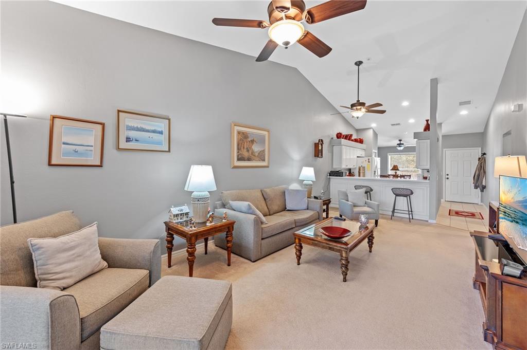 This is the only lakefront condo currently available in Stoneybrook! Featuring 2 bedrooms, 2 baths, and a desirable second-floor location, this well-kept residence offers breathtaking views of the lake and golf course. Vaulted ceilings enhance the sense of space throughout the main living area, while the eat-in kitchen boasts a breakfast bar, raised panel cabinets, and an open design overlooking the family room. The primary suite includes a bay window with tranquil views and an attached bathroom for comfort and convenience. A spacious screened lanai with southwest exposure provides the perfect backdrop for relaxing afternoons and unforgettable Florida sunsets. Impact resistant windows and sliding glass doors, new A/C August 2021. Low association fees include internet & cable through Xfinity, pest control interior, reserves for pressure washing, painting and roof replacement. Stoneybrook is one of Estero’s most popular communities, offering something for everyone. Residents enjoy a resort-style lifestyle with three community pools, tennis, pickleball, volleyball, bocce, basketball, baseball and soccer fields, a fitness center, and playground. The community’s 18-hole public golf course is pay-as-you-play, allowing golfers of all levels to enjoy without mandatory fees. With low association costs and a prime location near Miromar Outlets, Hertz Arena, FGCU, Coconut Point, RSW International Airport, and Southwest Florida’s renowned beaches, this condo provides an exceptional blend of lifestyle, convenience, and value. Don’t miss your chance to own the only available lakefront condo in Stoneybrook!