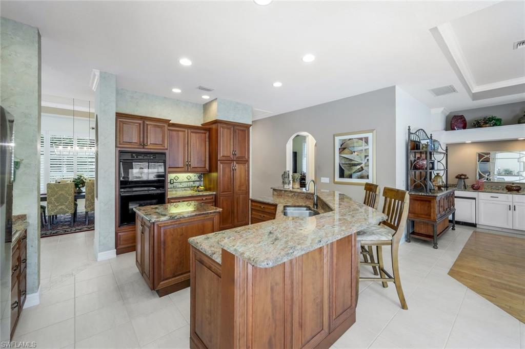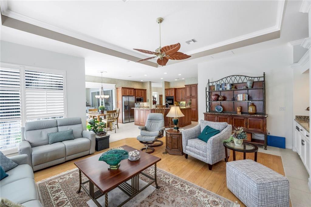 This Custom Estate Home captures the VERY BEST of Shadow Wood at Brooks living - Luxury, Location and Lifestyle. The prestigious Idlewilde neighborhood is one of Shadow Wood’s most prized locations, uniquely situated directly between the Country Club and the Commons Club. Picture yourself a short walk (0.3 miles/10 minutes) from the SWCC Clubhouse or a just a 12 minute stroll (0.5 miles) The Health & Wellness Center… Now that’s convenience! This one-of-a-kind custom Marvin-built home offers 3 spacious bedrooms, 3.5 bathrooms, and an elevated lifestyle defined by elegance, comfort, and attention to detail. From the moment you arrive, the pavered brick driveway and ornate double glass front doors set the tone for what lies within. Step into the grand foyer, where soaring ceilings, abundant natural light, and neutral ceramic tile flooring create a warm and inviting atmosphere that flows throughout the main living space. Designed for the culinary enthusiast, the chef’s kitchen features granite countertops, a large center island, custom wood cabinetry with soft-close drawers, a natural gas range, and double ovens — perfect for hosting and everyday living. The primary suite is a true retreat, complete with tray ceilings and crown molding, sliding glass doors to the lanai, dual walk-in closets, and a luxurious ensuite bathroom featuring separate vanities, an oversized walk-in shower with a massive mitered glass window, separate jetted Jacuzzi tub, and private water closet. Step outside to your SOUTHERN EXPOSURE lanai, where a resurfaced sparkling pool with sun shelf, newly rebuilt pool cage, and Kevlar hurricane shutters make year-round enjoyment effortless. A convenient half bath by the pool ensures seamless entertaining. Additional highlights include a NEW modern flat tile ROOF (2022), Oversized 2.5-car garage with NEW refrigerator (conveys with sale), custom ceiling details with crown molding throughout, Plantation shutters and much more. Set within one of Shadow Wood’s most desirable enclaves, this exceptional home offers privacy, peace of mind, and proximity to all of the community’s world-class amenities. Shadow Wood Country Club offers 54 holes of championship golf, tennis, bocce, world-class dining—all within your community. A brand-new Lifestyle Amenity Center is underway, featuring six INDOOR pickleball courts, two resort-style pools, restaurant & bar, racquet pro shop, and more. Residents also have access to THE COMMONS CLUB, featuring a private beach club, state-of-the-art fitness center, luxury spa, private restaurant, endless social & recreational opportunities.Don't miss your chance to own this meticulously maintained masterpiece!