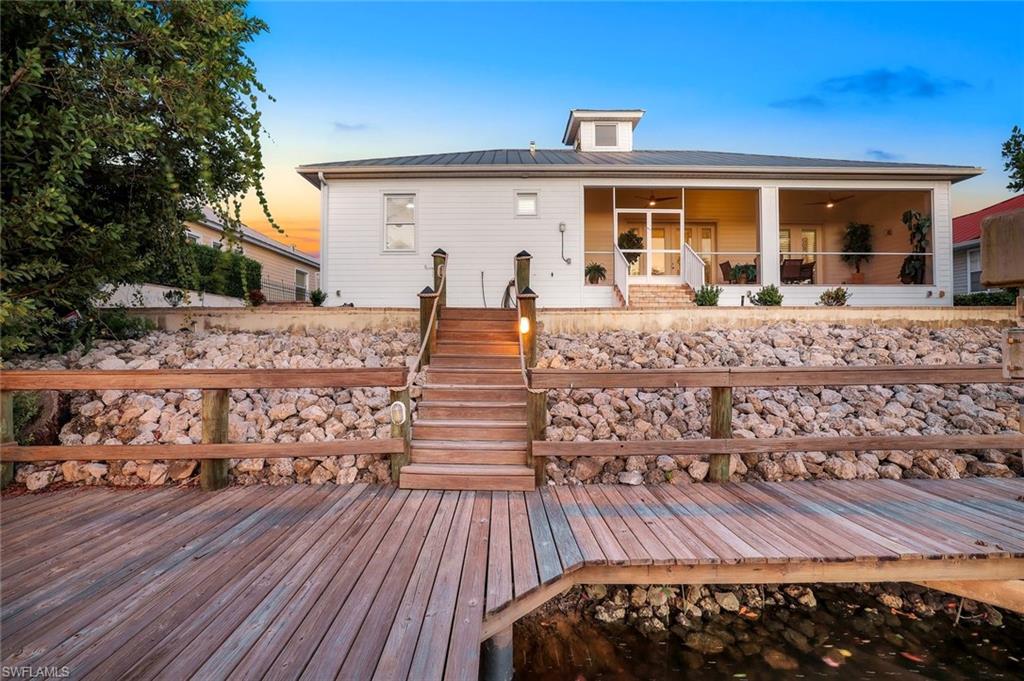 Stunning Custom Home with GULF ACCESS in Paradise Village, a charming private, gated enclave of 40 “Olde Florida” style homes situated along the Imperial River. Walk right onto your boat in your backyard with access to the Gulf of Mexico via the Imperial River, Western exposure grants gorgeous natural light with breathtaking sunsets. This high elevation single-story home has a fantastic open floor plan perfect for waterfront entertainment with a 34’ x 11’ screened lanai plus a pavered patio area pre-plumbed for an outdoor gas kitchen and includes 2090 square feet of living area with 3 bedrooms and 2.5 baths, soaring 10-14 ft. ceilings and a sun-dappled cupola with transom windows. The chef’s kitchen offers solid maple cabinetry, granite counter tops & backsplash, a spacious pantry & Thermador Pro series stainless steel appliances including double wall ovens and a 6-burner gas cooktop. Other features include high elevation (no flood water in this home), all impact windows, 500-gallon buried propane tank, 2023 whole house generator, metal roof (2014), 24” porcelain tile flooring throughout, plantation shutters, solid core doors, an extended boat dock with 7,000 lb lift new motors in 2023. This immaculately maintained home is fully move-in-ready and being sold as-is with right to inspect. Incredible location near downtown Bonita Springs offering a food truck park, live music, many locally owned restaurants, festivals/events, and a new library. 10 minutes to SWFL’s best beaches.
