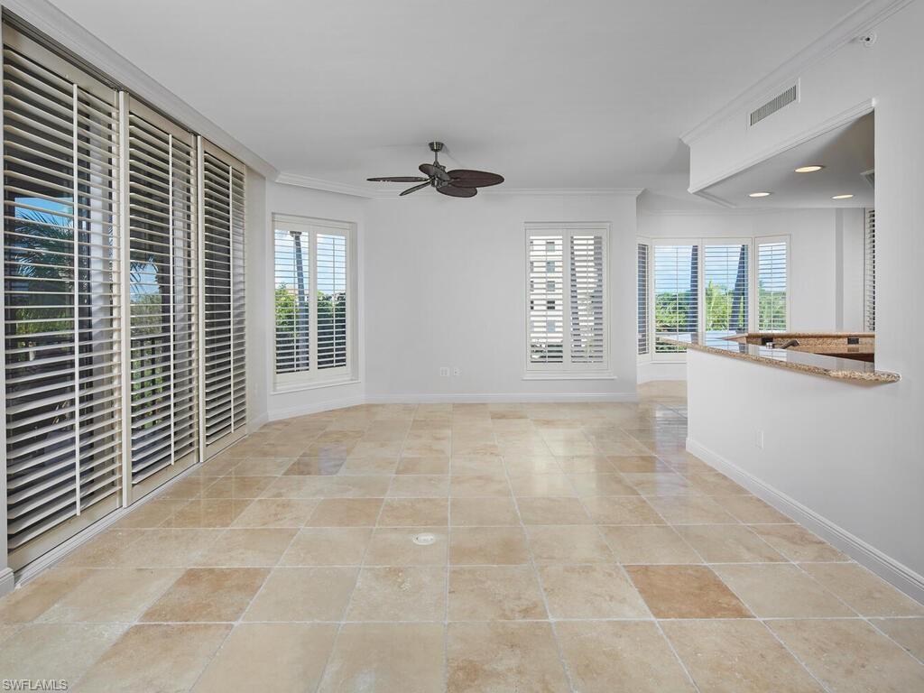 C12953 – Impeccable corner residence in Treviso, located inside The Colony at Pelican Landing, which is Bonita Springs’ premier luxury golf and beach community. This beautifully maintained and spacious single-family-style corner residence boasts a fabulous and functional floor plan that offers the perfect blend of elegance, comfort, and privacy. Enjoy exquisite panoramic views of emerald fairways, lush tropical palms, and manicured landscaping from this bright, wraparound corner unit, filled with natural light from floor-to-ceiling glass slicing doors and windows. The expansive layout features 3 ensuite bedrooms and a private study, 3.5 baths, and multiple living and entertaining spaces, including a family room, formal living and dining rooms, and a charming breakfast nook. The lavish primary suite is a private retreat, complete with a spa-style bathroom and dual custom walk-in closets and private access to the lanai. A true split-bedroom floor plan offers optimal privacy for the two ensuite guest bedrooms. Additional highlights include: Private elevator foyer, 42-foot screened lanai plus two open-air balconies. Two assigned garage spaces and extra airconditoned secure storage. High-end finishes including plantation shutters, crown molding, 9’8” ceilings, ceiling fans, and marble/granite surfaces and automatic storm shutters. This is a rare opportunity to enjoy resort-style living in a meticulously cared-for residence with timeless luxury and unbeatable views. Treviso’s updated common areas feature transitional furnishings and marble floors with views over water features. Three guest suites, which include a two bedroom apartment. A beautiful secure lobby, elegant social room, billiards room, theater, and a newly updated fitness center complete the interior amenities. Spa and free form large pool with graceful beach access and a separate social pavilion. The Bay Club, a Colony private waterfront dining facility, offers intimate dining or informal sunset dining/entertainment. Experience a full array of community amenities such as a 34 acre island beach park with boat shuttle, Kayaking, canoeing, tennis, pickle ball, bocce and sailing. Close to Coconut Point Shopping Center. 15 minutes to the airport.