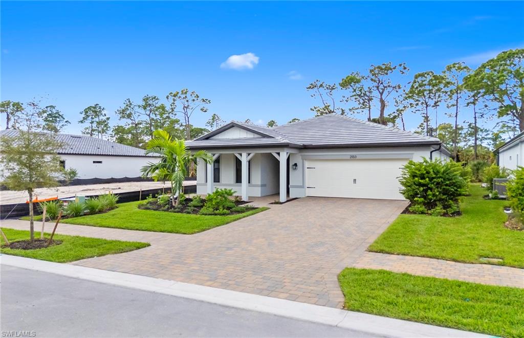 Move to Terreno before the end of the year! This Palmary plan with a POOL is now available. Discover modern comfort and luxurious style in this stunning 2-bedroom, 2-bath home with enclosed den, offering 1,943 square feet of thoughtfully designed living space. The open-concept gourmet kitchen is the heart of the home, featuring built-in appliances, quartz countertops, soft close drawers, and an oversized island that seamlessly connects the café and gathering room—perfect for entertaining. Step outside to your screened lanai, complete with outdoor kitchen pre-plumb and sparkling pool, where you can relax and take in the breathtaking golf course views of the 11th hole. The owner’s suite provides a private retreat with a spacious walk-in closet and oversized walk-in shower, while the flexible den offers the ideal space for a home office or guest room. This home is situated on a cul-de-sac street with western facing lanai, perfect for taking in the Florida sunset. With elegant finishes, open sightlines, and resort-style outdoor living, the Terreno perfectly blends comfort and sophistication for the way you live today. Terreno by DiVosta is a gated community offering a resort lifestyle with open floor plans, gourmet kitchens, and large outdoor living spaces. For those looking for resort lifestyle communities with private amenities and modern houses, or luxury homes for sale in Naples, FL, Terreno should be your top choice. Neighborhood features include 15,000 sq. ft. grand clubhouse with large community room for events, catering kitchen, state-of-the-art fitness center, exercise studio, 8 pickleball courts, 2 tennis courts, dog park, playground, firepit lounge, dog park, resort style pool, lap lanes, heated spa, full-service restaurant bar & grill, food truck drive-up, full-time lifestyle director and HOA office onsite! 18-hole public golf-course next door & more!