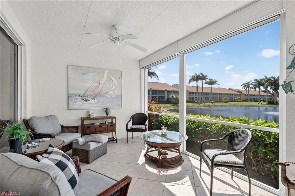 Live the resort lifestyle in the heart of paradise at Falling Waters — a gated, picturesque community known for its lush tropical landscaping and signature cascading waterfalls. This beautiful first-floor condo offers stair-free living and an inviting open layout perfect for entertaining. The spacious kitchen with a charming breakfast nook flows seamlessly into the dining and living areas, while triple sliding doors open wide to an oversized screened lanai with a built-in outdoor kitchen — ideal for enjoying meals with serene lake and fountain views. The primary suite is a private retreat featuring a large walk-in closet, ensuite bath, and direct lanai access for peaceful mornings or sunset relaxation. A second bedroom, full guest bath, and dedicated laundry room provide comfort and convenience for both residents and guests. Enjoy breathtaking western exposure, offering nightly sunsets over the water. Lanai storm shutters provide peace of mind. Residents of Falling Waters indulge in resort-style amenities, including one of Southwest Florida’s largest pools, an active clubhouse, tennis and bocce courts, shuffleboard, and a putting green — all designed for fun, fitness, and community connection. Located just 5 miles from Naples’ 5th Avenue and the white-sand beaches of the Gulf, this home offers the ultimate in Florida lifestyle living. Don’t miss your chance to own a slice of paradise — schedule your private showing today!