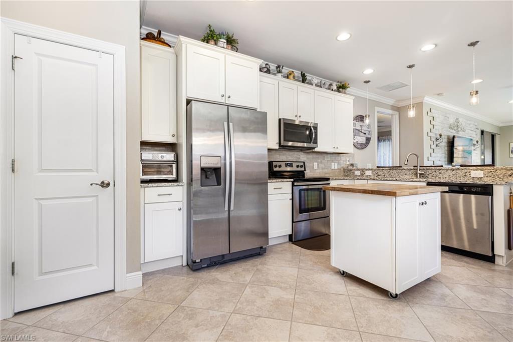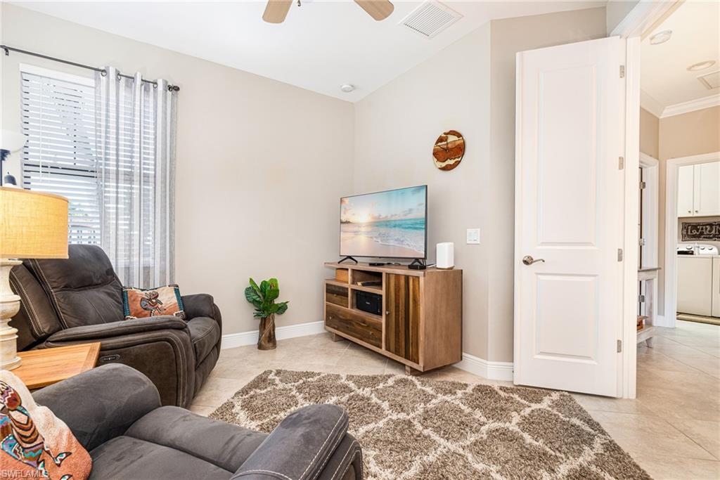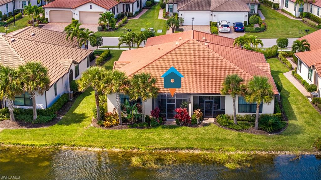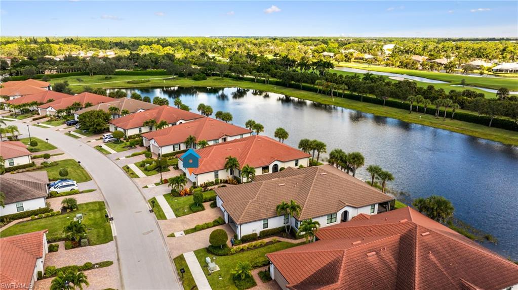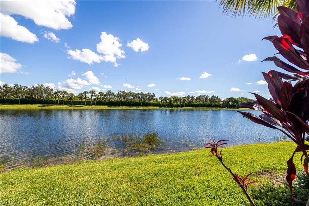 Peaceful water views greet you as soon as you step inside this upgraded and immaculate WCI home, featuring a screened in entryway, and Impact resistant doors, and windows. A spacious floor plan, with lake views from the master bedroom, kitchen and living room, equals the perfect home for relaxing or entertaining. The eat in kitchen is customized with pendant lighting, shaker cabinets, a kitchen island with butcher block, granite counters, stainless steel appliances, and a pantry. The owner suite includes a double vanity, a private water closet, a tiled walk in shower and a large walk in closet with a motion sensor light. Savor your morning coffee and watch the sunrise on your extended lanai, equipped with cable, a ceiling fan, and the added comfort of no-see-um screens. Other enhancements include shaker cabinets and a sink in the laundry room, ceiling fans throughout, recessed lighting, crown molding and 6 inch base molding, and the stunning accent wall in the living room. The gated community of Artesia is ideally located between downtown Naples and Marco Island, and is near many magnificent beaches. Amenities include: a resort style pool, billiard room, theater, fitness center, library, newer pickleball and bocce courts, and all kinds of social activities and clubs to join. Artesia is a pet friendly community with 2 dog parks. Artesia has NO CDD and the LOW HOA includes FREE cable, WiFi and lawn maintenance. Seller has an inexpensive flood insurance policy, which can transfer.