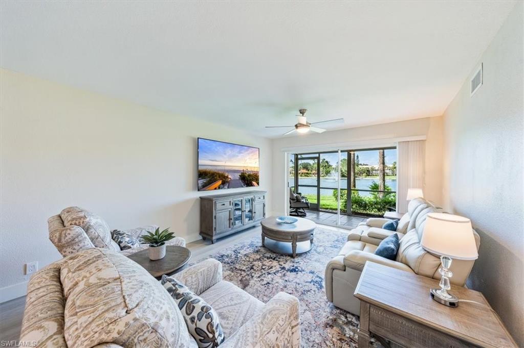 Perfection is possible! The purchaser of this condo will enjoy what every buyer in today’s market is searching for: A stunning, COMPLETELY REMODELED, lake view, furnished condo ready for immediate occupation. Set foot in this beautiful 2 bed 2 bath, bright residence and revel in the numerous updates: New light gray wood-look floor tile, new stainless appliances, new kitchen cabinets with white quartz countertops as well as a separate coffee bar. Impressed already? See the bathrooms and you will be truly amazed; New cabinets, fixtures and white quartz counter tops, as well as frameless glass shower doors, and attractive wave-pattern tile in showers. Both the lovely bright living room as well as the sizeable master bedroom feature a mesmerizing lake view with access to the large screened-in lanai. Falling Waters is a much sought-after community with lush vegetation and one of the largest resort-style pools in Naples. Owners love the central location and the plethora of activities such as tennis, bocce, putting greens and the updated clubhouse.