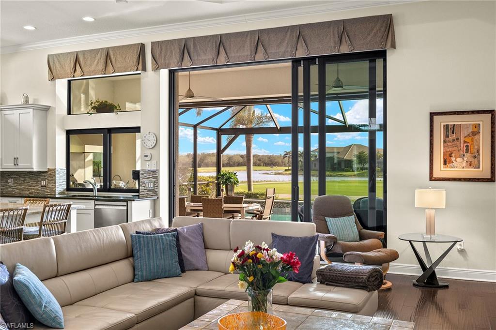 This residence includes a full golf membership, allowing immediate access to the greens upon closing. In TwinEagles, this 3,020-square-foot home offers refined living with four bedrooms, a den and four baths. The open floor plan showcases thoughtful design and meticulous craftsmanship throughout. A gourmet kitchen serves as the centerpiece, featuring custom white cabinetry, stainless-steel appliances, granite countertops and a designer backsplash. The kitchen seamlessly connects to the living and dining areas, creating an inviting space for intimate gatherings or larger-scale entertaining. The primary suite provides a private retreat with dual vanities, a soaking tub and a separate shower. Outdoors, the residence presents an exceptional setting for enjoying the Southwest Florida lifestyle. The covered lanai includes a fully equipped outdoor kitchen overlooking a heated pool, spa and water feature. The picture-screen enclosure frames serene views of the lake and golf course. TwinEagles encompasses 1,115 acres of natural beauty and tranquility. Residents enjoy access to two championship courses: the Talon Course, designed by the Nicklaus Group, and the Eagle Course, designed by Steve Smyers. The recently renovated clubhouse features dining and social spaces, along with bocce courts, a Himalayan putting green, fitness center, tennis and pickleball courts, a resort-style pool and a tiki bar.