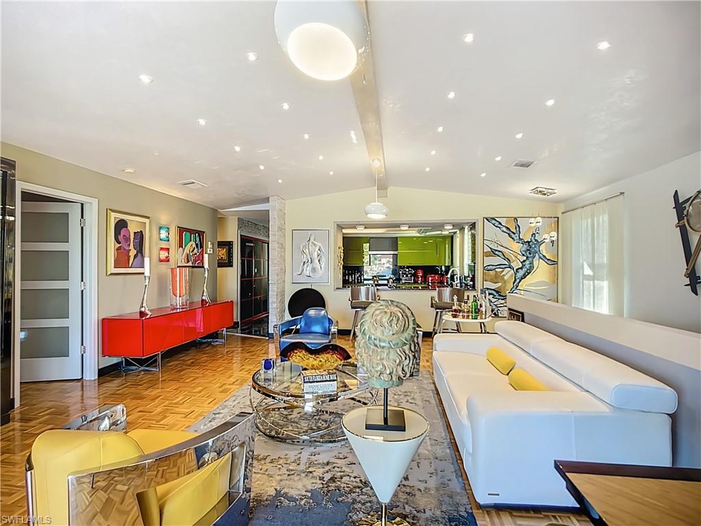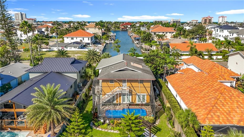Take advantage of trully unique opportunity to purchase this two story artistically furnished home that perfectly blends modern sophistication with timeless design in the heart of Naples Park . Located on quiet Vanderbilt drive within walking distance to the beach and the dining at Ritz Carlton,La playa and Turtle club , this property has long water view of canal leading to Naples Bay. Elegance, comfort, and convenience: Sparkling chandeliers, intricate tile work, and expansive marble slabs, complemented by warm European oak flooring, create a radiant and refined interior.This unique home offers separate guest suite with full size kitchen/living sleeping area that can be also mother in law dwelling, as well as top 3 bedroom 2.5 bath eclectic residence that is connected with generously appointed staircase that is utilized as art exhibit space ! A private pool compliments beautiful outdoor space — a covered pool deck / lanai and an upper-level balcony — offers ideal unique space for enjoying iconic Naples sunrises on the pool area and sunsets from the upper level living room. The two kitchens feature top of the line appliances, custom made countertops, artistic accents, and a new marble backsplash . Thoughtful floor plan design allows for all rooms to have perfect privacy and views. Master bedrooms showcase sweeping views of canal leading to NaplesBay, where you can watch boats come and go throughout the day , adding movement, beauty, and a true sense of water view living. Step outside to your private retreat, complete with a pool and beautiful garden . Recent updates include a sleek glass railing around the front deck, and a striking imported Italian porcelain accent floors .Review the virtual tour link for a video of this home, it is truly stunning.