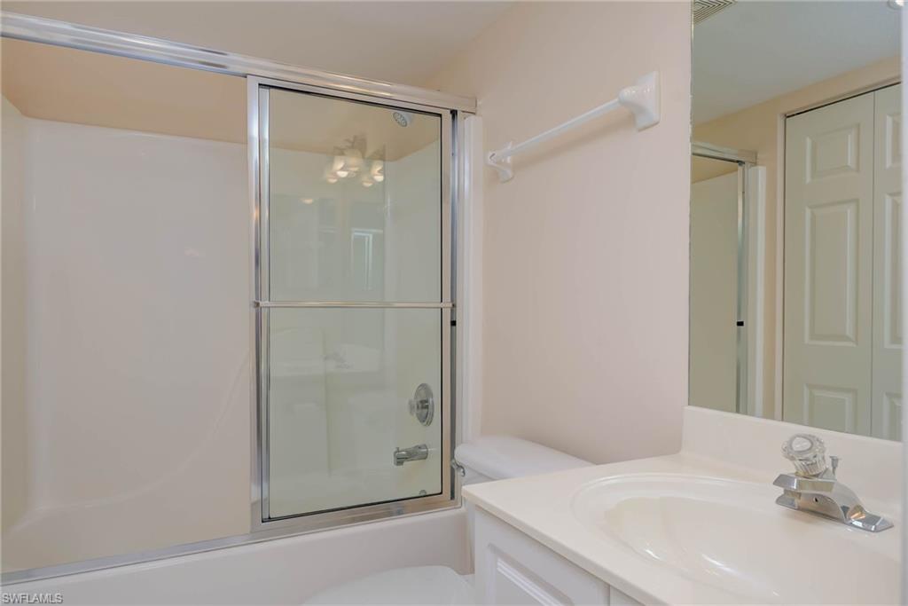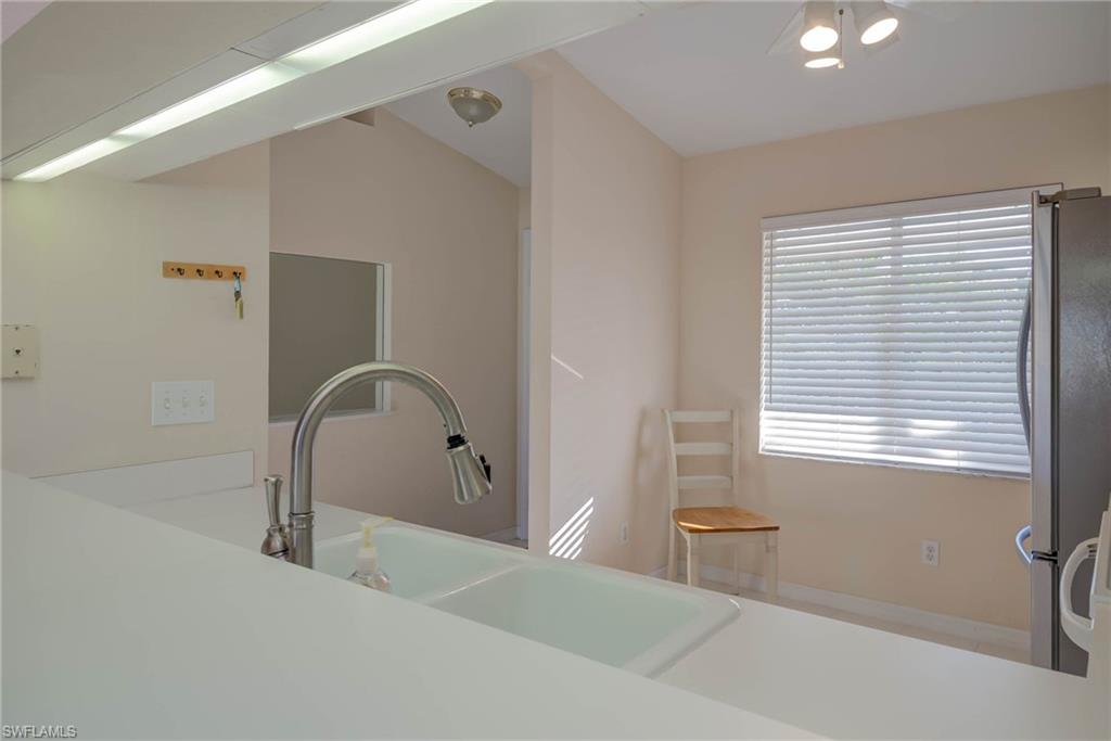 Top floor and well maintained, waiting to be someone’s winter get-a-way again. Slicers on the outside of the tiled lanai gives one the feeling of the outdoors while enjoying the comfort of indoors. Being sold furnished. The a/c and hot water heater were replaced in 2024 and the refrigerator and washer were replaced in 2025. This home comes with covered parking and an outdoor storage closet adjacent to the assigned parking space. The top floor gives you volume ceilings, no noise from above, no leaks from above and the best view. The condo association has a patio area with barbeque grills that is perfect for their numerous community socials and personal entertaining. Breckenridge is a friendly and socially active community has bundled golf with no cart fees, 5 pools, 8 Har Tru tennis courts, pickle ball, bocce, shuffle board and many activities in the clubhouse. Estero is in the heart of Southwest Florida, only minutes from the airport, beaches, 3 huge shopping malls, restaurants galore, public library and state park. Short drive to Naples or Fort Myers. 5G WiFi is included.