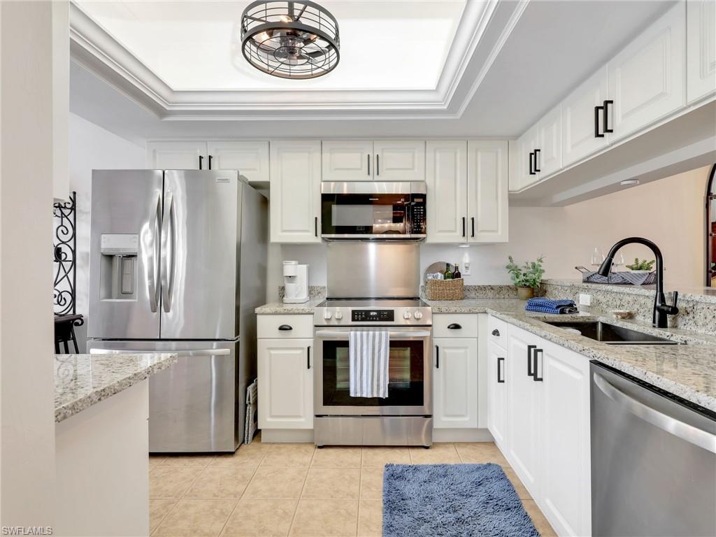 Experience Florida living at its best in this updated third-floor condo in the Breckenridge Golf and Tennis Club! This turnkey furnished 2-bedroom plus den, 2-bathroom condo features a split bedroom floor plan and a great room layout. The white kitchen has granite countertops, a breakfast bar, new stainless steel appliances including a sleek slide-in range (2023), a new stainless steel single bowl sink, new black faucet and hardware, and a cozy eat-in area. Tile floors flow through the main living spaces, while carpet adds warmth in the bedrooms. The primary suite offers a charming bay window, private secondary access to the screened-in lanai, a large walk-in closet, and an updated bathroom with granite counters, new vanity lighting, mirror, and sleek black faucet, & hardware. The second bathroom has also been upgraded with a granite countertop, new vanity lighting, mirror, faucet, hardware and has a tub/shower combo. New fans & lighting throughout. The screened-in tiled lanai features lake views and golf course views along with hurricane shutters for convenience. Additional conveniences include an in-unit laundry with full size washer & dryer, an outdoor storage closet, & a covered carport space. Enjoy an impressive array of amenities including an 18-hole par 3 golf course, driving range, putting green, Har-Tru tennis courts, pickleball, shuffleboard, bocce, horseshoes, and even ping pong. Relax at the main clubhouse pool and hot tub or choose from four additional satellite pools throughout the community. The main clubhouse offers a fitness room, catering kitchen, library, and resident gathering areas. Breckenridge has an active social calendar filled with themed events, dinner dances with live entertainment, and countless activities such as bingo, knitting, card groups, and fitness classes. Ideally located near world-class shopping, dining, and the stunning Gulf beaches, this community offers the perfect blend of relaxation, recreation, and convenience.