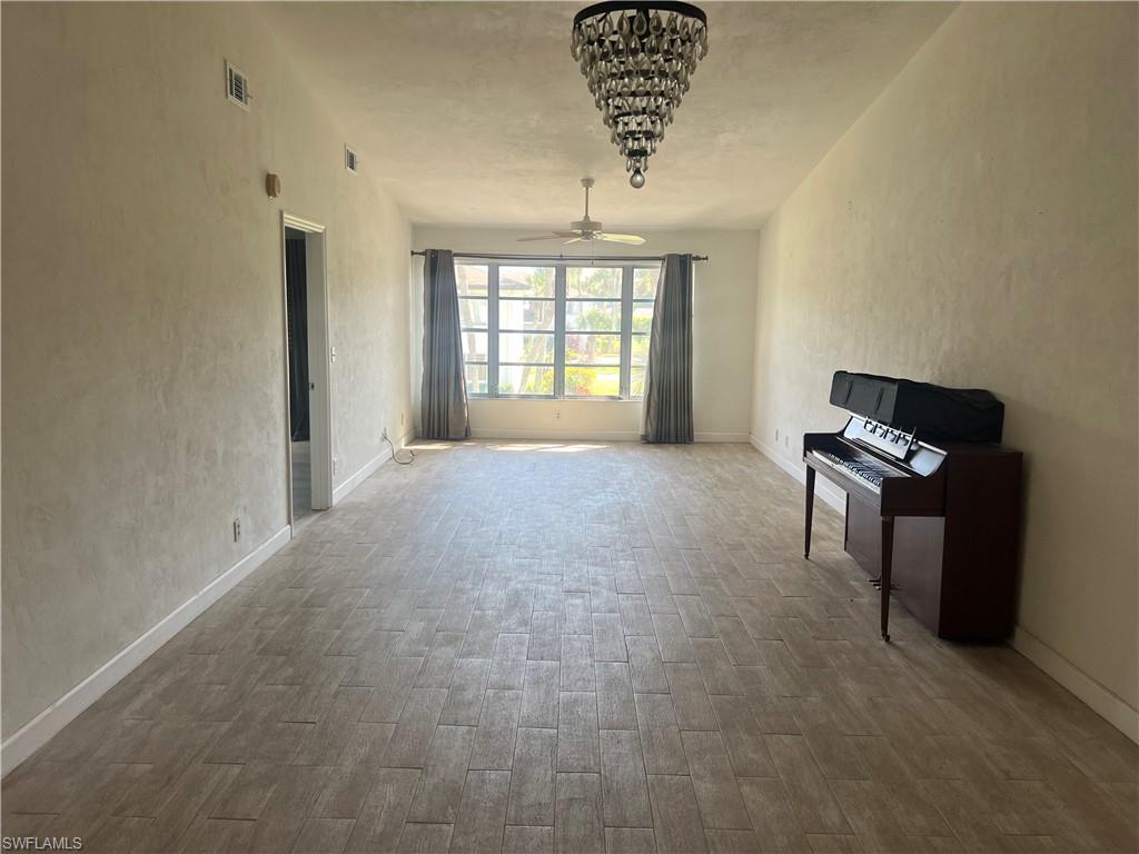 Discover an exceptional opportunity to own one of only 8 unique corner units in this celebrated Naples community. The moment you step inside, your eyes are drawn upward to the breathtaking cathedral ceilings, creating an immediate sense of grandeur and space. Updated Flooring, elegant floors flow throughout, providing a perfect , polished canvas for your final touches. This 2 Bedroom / 2 Bath condo offers the perfect blend of resort-style living and prime location. You have the freedom to add your personal flair and complete the minor updates needed to create your spectacular dream home. Live the vibrant Naples Lifestyle, with Downtown Naples, Beautiful Beaches, Tin City and Celebration park all just minutes away. The community itself is a destination, boasting a resort-style pool, clubhouse, pickleball and tennis courts. This is more than a home; it's an investment in a highly sought-after , luxurious Florida Lifestyle at a low cost.