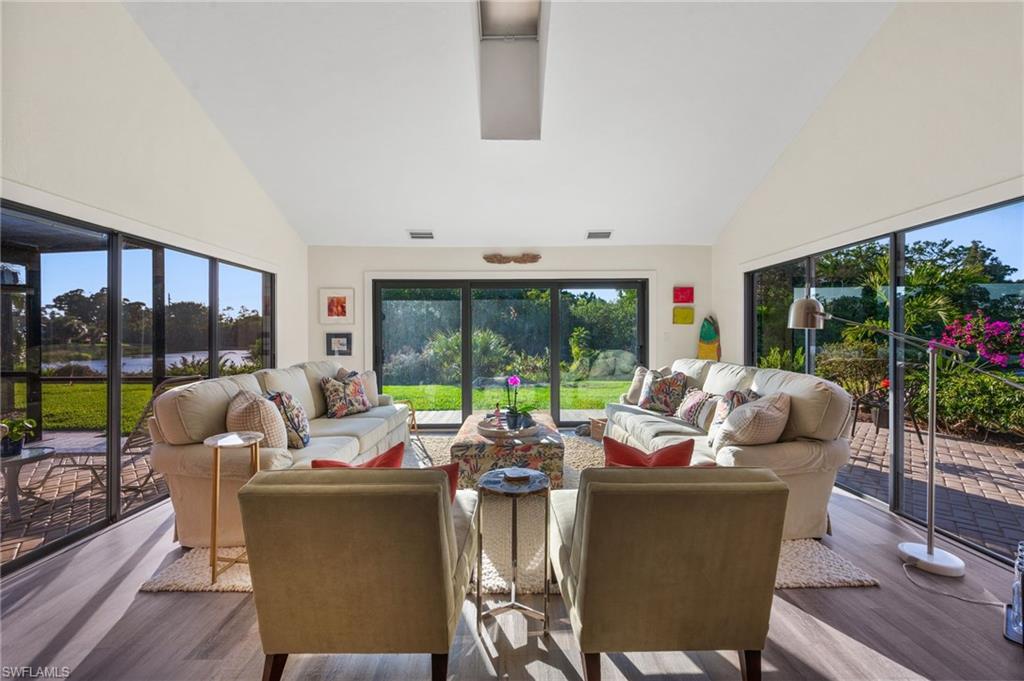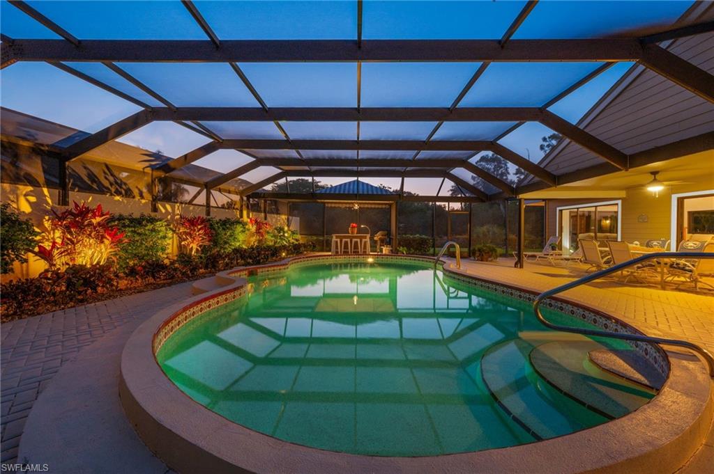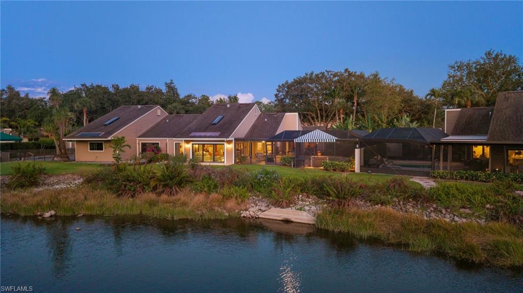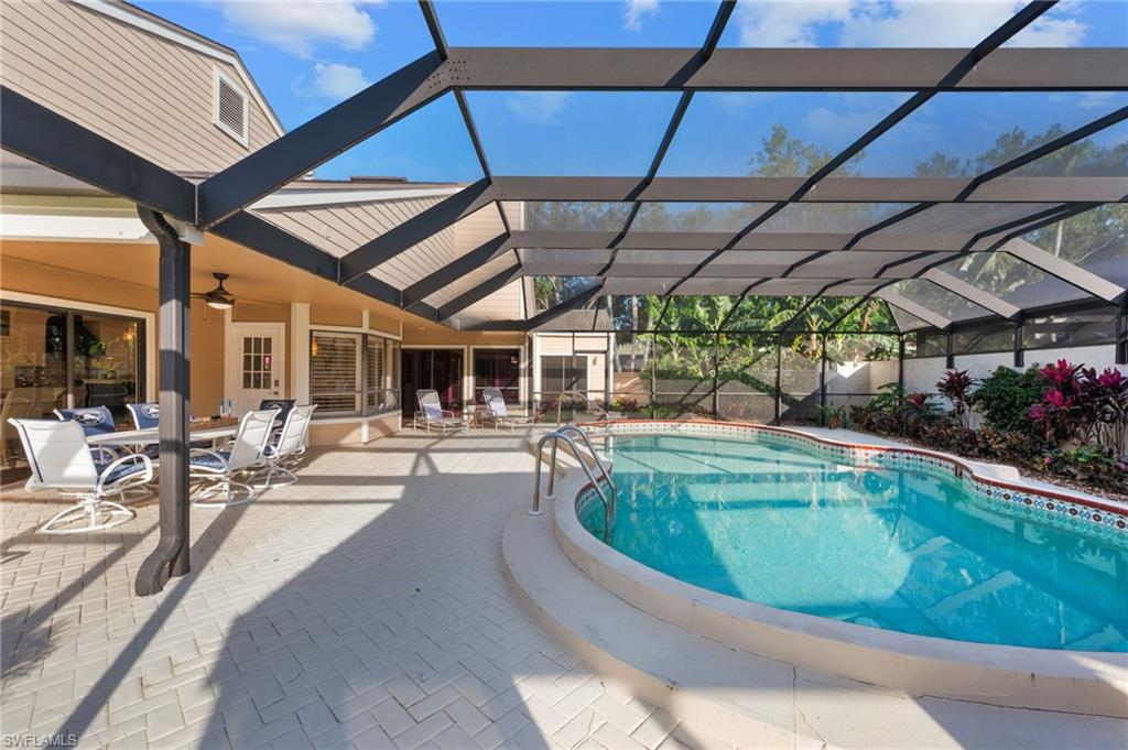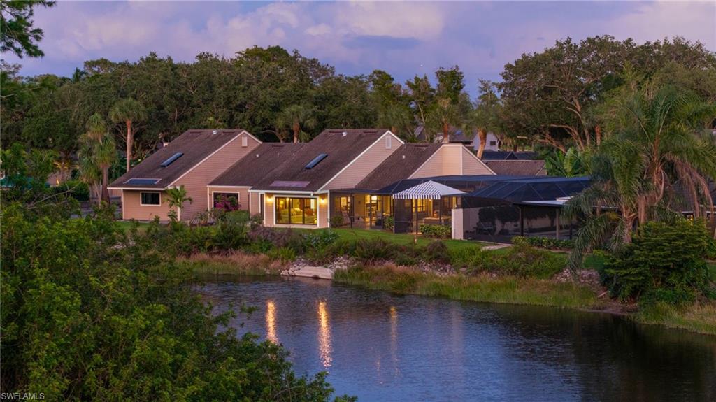 This is a gem of a property in the highly desirable neighborhood of Pond Apple overlooking the preserve. Quiet and private, with spectacular water views. Beautifully landscaped and renovated with attention to every detail. 5000 sq ft of indoor and outdoor living space. Kidney shaped pool with plenty of outdoor entertaining areas. 3 bedrooms plus a bonus room for extra guests or to use as an office. The 2 guest rooms each have their own dual vanity sinks with a connecting shower and commode. Brilliantly designed and tastefully decorated with modern lighting, ornamental wall sconces, stenciled walls, and stenciled tile flooring. The open living dining kitchen area all have water views and loads of natural light. Completely renovated inside and out with Hardy plank siding. Separate laundry, attached 2 car garage. Wyndemere offers immediate 27 holes of Arthur Hills golf, 10 HarTru tennis courts, pickleball, bocce, croquet, resort-style zero entry pool, state of the art fitness center, w/full spa services & group exercise classes. New activity center with circular outdoor bar and pickle ball stadium for exhibition matches with seating for 165! Enjoy indoor/outdoor casual dining at the Tiebreaker and a lively social schedule of events/parties at the club. Wyndemere, a gated premiere 2025-2026 Platinum Club of America, known for its friendly and welcoming membership, is ideally located within minutes to world class dining, shopping and the spectacular sugar sand Gulf beaches. Move right in and start enjoying this amazing club and our fabulous Southwest Florida lifestyle!