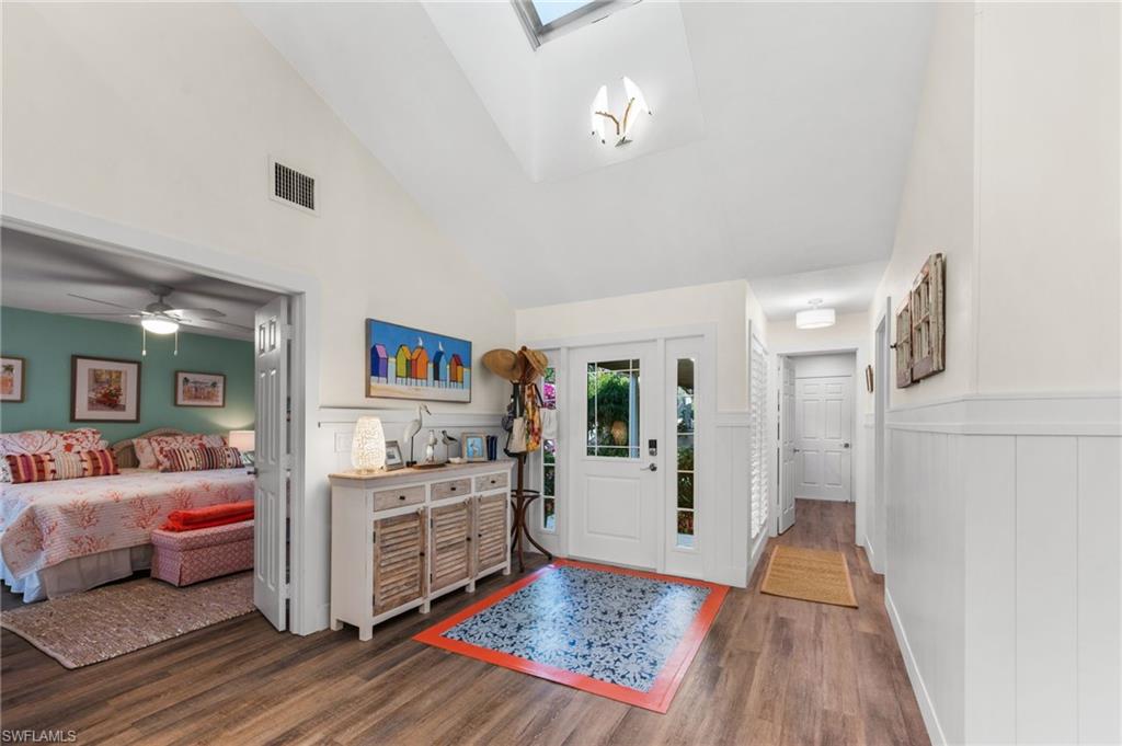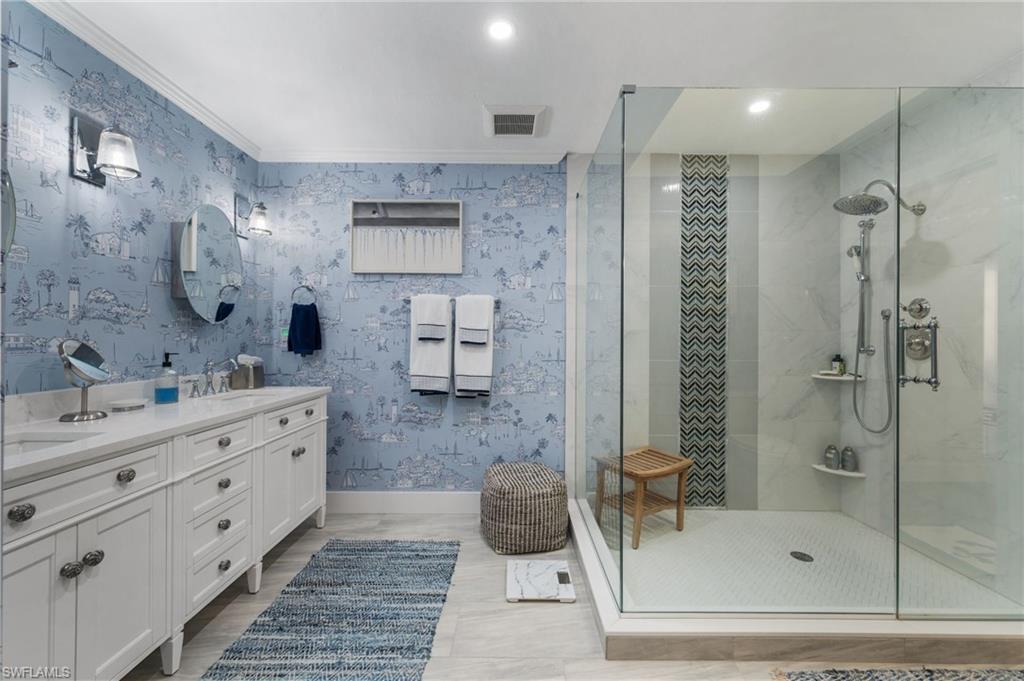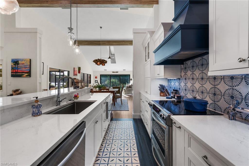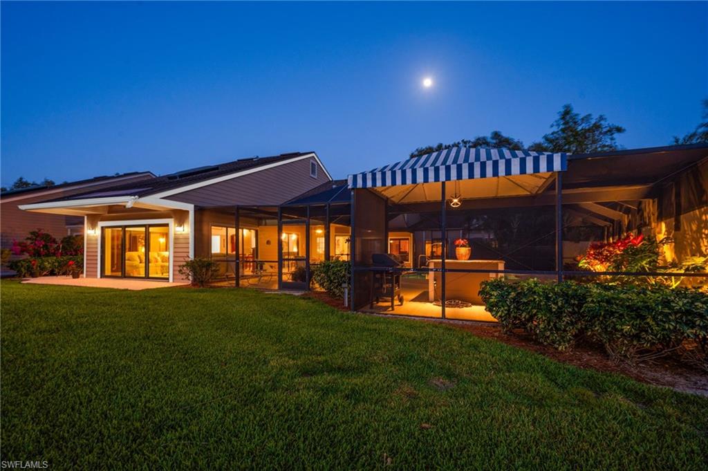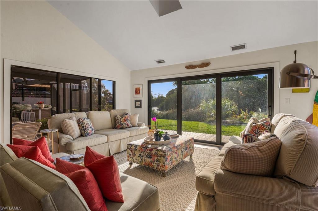 This is a gem of a property in the highly desirable neighborhood of Pond Apple overlooking the preserve. Quiet and private, with spectacular water views. Beautifully landscaped and renovated with attention to every detail. 5000 sq ft of indoor and outdoor living space. Kidney shaped pool with plenty of outdoor entertaining areas. 3 bedrooms plus a bonus room for extra guests or to use as an office. The 2 guest rooms each have their own dual vanity sinks with a connecting shower and commode. Brilliantly designed and tastefully decorated with modern lighting, ornamental wall sconces, stenciled walls, and stenciled tile flooring. The open living dining kitchen area all have water views and loads of natural light. Completely renovated inside and out with Hardy plank siding. Separate laundry, attached 2 car garage. Wyndemere offers immediate 27 holes of Arthur Hills golf, 10 HarTru tennis courts, pickleball, bocce, croquet, resort-style zero entry pool, state of the art fitness center, w/full spa services & group exercise classes. New activity center with circular outdoor bar and pickle ball stadium for exhibition matches with seating for 165! Enjoy indoor/outdoor casual dining at the Tiebreaker and a lively social schedule of events/parties at the club. Wyndemere, a gated premiere 2025-2026 Platinum Club of America, known for its friendly and welcoming membership, is ideally located within minutes to world class dining, shopping and the spectacular sugar sand Gulf beaches. Move right in and start enjoying this amazing club and our fabulous Southwest Florida lifestyle!