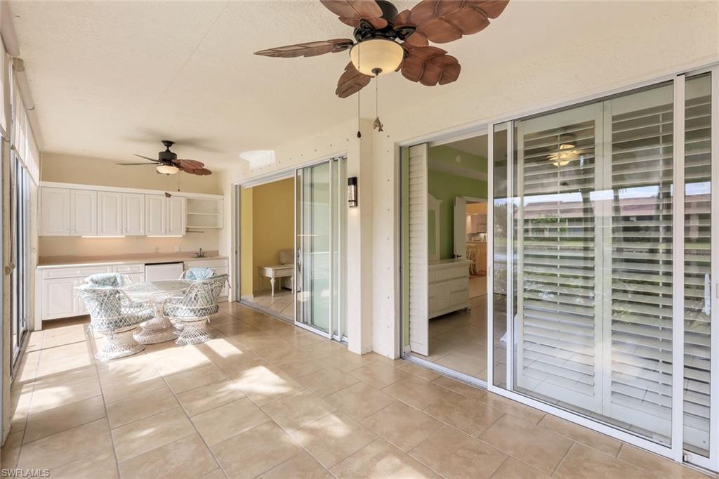 FIRST FLOOR Lakeview condo located on a Premium Cul De Sac. This provides a very private and quiet environment with no traffic. Discover serene living in this beautifully appointed 2-bedroom, 2 -bath split bedroom floor plan. Enjoy tranquil lake views from over 300 square feet of extended space thanks to a fully ENCLOSED LANAI with glass sliding doors-perfect for year-round relaxation or entertaining. The summer kitchen has a full set of base and overhead cabinets, sink and refrigerator to complete this great space. The kitchen features white raised panel cabinets, quartz counters and white appliances. The open-concept layout has tile throughout with abundant light. The master suite has a tray ceiling, plantation shutters, sliding doors leading to the lanai and the bathroom has a new rain glass shower enclosure with a new tile floor, dual sinks, walk in closet and linen closet. Detached one car, 12'x24' garage offers ample parking and storage. This condo offers the perfect blend of comfort, style and peaceful surroundings. Whether you are seeking a seasonal retreat or a full-time residence, this home delivers exceptional value and lifestyle. To add to the Falling Waters lifestyle are the amenities. The largest saltwater community pool in SW FL, 11,000 sf with tropical landscaping and connected to a clubhouse that provides many activities. Enjoy a round of tennis with friends on the clay tennis courts. The bocce courts offer a place to play a fun sport with new neighbors in many of the seasonal bocce leagues. Falling Waters's ideal location provides a 4.5-mile direct drive to the shops and fine dining offered on 5th Ave & Third Street in downtown Naples and the the beaches of the Gulf.