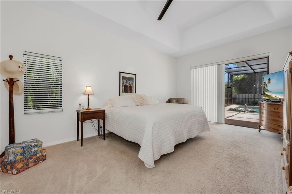 Enjoy space, privacy, and relaxed coastal living in this beautifully maintained three bedroom two bath pool home located west of US 41 in a gated Bonita Springs community with low HOA fees. Set on an oversized corner lot, the expansive fenced backyard offers lush landscaping, peaceful views, and plenty of room to unwind. The screened outdoor living area includes a sparkling pool and spa, a covered seating space, and an updated pebble aggregate pool deck that is slip resistant and easy to maintain. Wide pocketing sliders open from the living room to create a seamless indoor outdoor flow, perfect for entertaining or everyday comfort. Inside, more than 2,300 square feet of light filled living space features volume ceilings, a split floor plan, and an updated kitchen with 2020 appliances and extended countertop seating. The private primary suite sits separately from the guest rooms, offering convenience for families or visitors. This west of 41 location is ideal for enjoying everything Southwest Florida offers. You can bike to Bonita or Vanderbilt beaches, walk to nearby restaurants and ice cream shops, and take advantage of quick access to Mercato, Coconut Point, and other top shopping and dining spots. Recent improvements include a 2018 roof and AC, 2020 electric panel, 2020 kitchen upgrades, and a 2024 hot water heater. Storm Defense panels provide added protection and peace of mind. A wonderful opportunity to own a piece of Paradise!