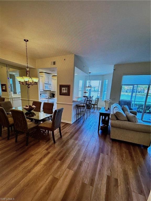 Lovely first floor Veranda located in popular Cypress Woods Golf and Country Club. One car garage! Spectacular views of the lake and 16th tee box from the open concept of the living room and dining area. Unit is updated! Kitchen area with breakfast nook. Living room with glass sliding doors to the back lanai. Brand new HVAC unit and newer hot water heater. Luxury vinyl plank flooring in all living areas/bedrooms. Unit has been newly painted! Custom closet in master bedroom. Being sold partially furnished.