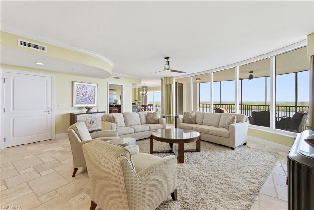 Step into the luxurious embrace of 1050 Borghese Lane, Unit 1004, a residence where every detail has been thoughtfully curated to elevate daily living. This fully furnished residence welcomes you by the warm glow of custom light fixtures that illuminate the open-concept living space with sophistication and style. The kitchen is a true showpiece, featuring striking custom granite countertops that offer both beauty and durability, seamlessly paired with rich cabinetry and a dry bar complete with a wine cooler which is perfect for hosting intimate gatherings or a quiet evening at home. Expansive windows frame serene sky and landscape views, enhanced by custom sun-blocking shades that allow you to tailor light and privacy throughout the day. Elegant crown molding flows from room to room, adding depth and distinction to the home's refined aesthetic. Nestled within the exclusive Lesina at Hammock Bay, this residence offers far more than an exceptional interior. The community showcases a stunning collection of resort-style amenities—including a tropical pool and spa, state-of-the-art fitness center, private theater, social and card rooms, grand lobby, guest suites, outdoor pavilion, and BBQ area. Surrounded by lush landscaping and located just minutes from both Marco Island’s beaches and Naples’ upscale dining and shopping, the Lesina delivers a lifestyle defined by comfort, luxury, and convenience. Unit 1004 embodies the best of high-rise living with timeless finishes, peaceful views, and unparalleled community offerings.
