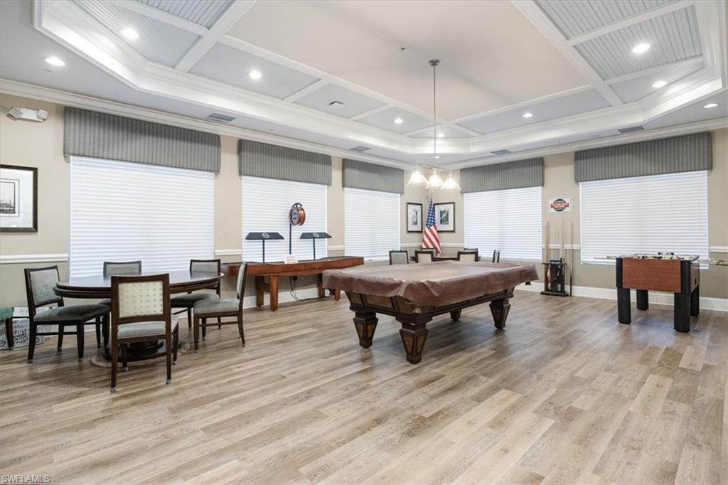 BRAND NEW luxury vinyl "wood look" flooring in the main areas of the condo, hot water heater, and disposal (November 2025). Welcome to this meticulously maintained 2nd-floor condo in the sought-after gated community of Marbella Lakes. Freshly painted and beautifully furnished with high-end decor (furniture package negotiable), this residence offers a spacious kitchen with warm wood-toned cabinets, a large pantry, stainless steel appliances, and a tiled backsplash. Enjoy versatile dining options with a breakfast bar, eat-in kitchen nook, and formal dining space. Upgrades include crown molding, updated lighting, and custom draperies and blinds. A guest suite doubles as a den with custom built-ins for a desk and storage. Relax on the private screened lanai with tiled floors. Community amenities feature a resort-style pool, splash pad, fitness center, clubhouse, three clay tennis courts, and four new pickleball courts. Conveniently located near shopping, dining, downtown Naples, and the Gulf of Mexico’s sunny beaches, just west of I-75—an ideal location for enjoying the Naples lifestyle.