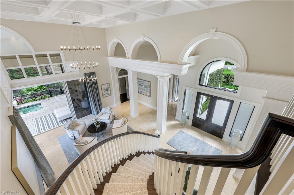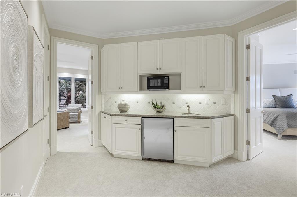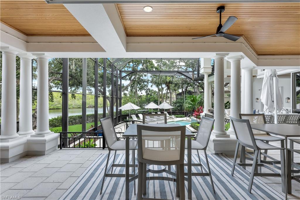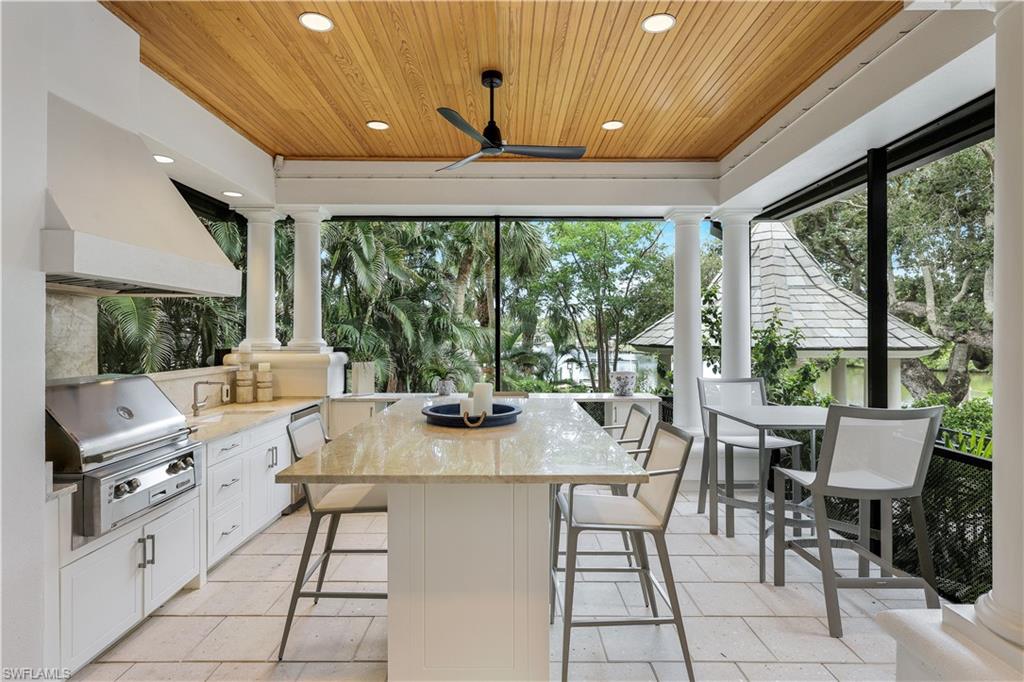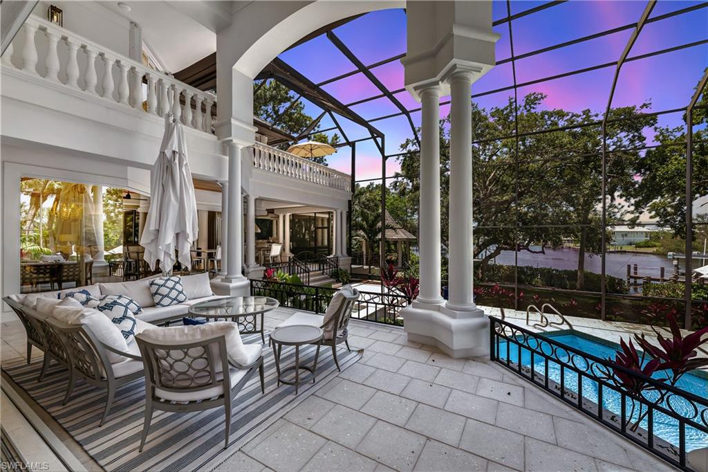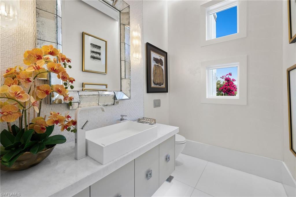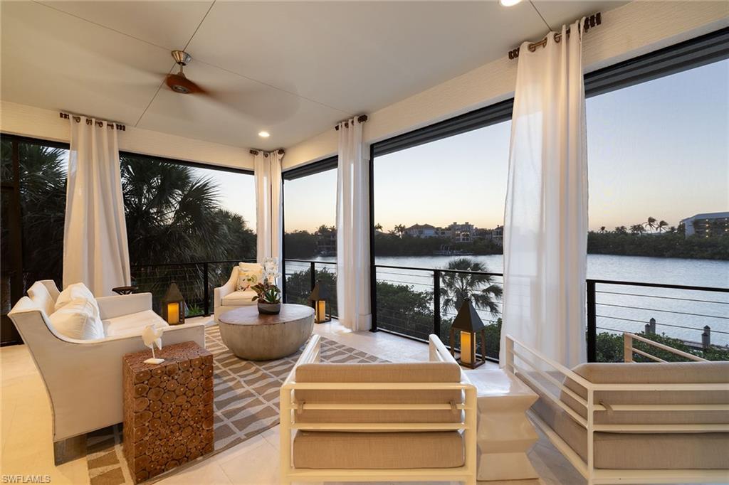 Experience the essence of luxury bayfront living in the idyllic double-gated enclave of Southport on the Bay at Barefoot Beach in Collier County with this fully reimagined and meticulously renovated residence, offering convenient beach access and captivating bay views from every room. Enjoy the beauty of sunrises and sunsets from the open-concept living area, enhanced by exceptional high-end finishes and spacious screened outdoor balcony. The chef’s kitchen features high-gloss German cabinetry and top-tier appliances by Sub-Zero, Miele, Wolf, and Fisher & Paykel, with Dornbracht and Brizio faucets, all showcasing a dramatic backlit Cristallo waterfall island. Soaring ceilings, white oak hardwood floors, custom millwork, glass railings, fine window and wall treatments, and curated lighting fixtures create a warm yet refined ambiance. The upper level is entirely dedicated to a 1,300-square-foot primary suite with a spa-style bath featuring exotic stone, Dornbracht and Graff plumbing fixtures, Kohler Numi smart commode, custom Italian closet systems, sitting area, office/den, newly installed skylights and private laundry room, offering magnificent views in all directions. Outdoor living is equally elevated, with covered lanai, heated saltwater pool and spa, linear fireplace, motorized pergola, extensive natural stone flooring, and maintenance-free decking on the upgraded boat dock with 10,000-pound lift. Lush, professionally lit landscaping enhances privacy, while peace of mind is helped via 24/7 guard-gated security, a 38-kilowatt Kohler whole-house generator, impact-rated windows and doors, commercial-grade fire sprinklers, elevator, top-of-the-line Trane HVAC systems and pool heater installed within the last two years, and mosquito misting system. No water intrusion during the 2024 storms, according to the owner. This exceptional home invites you to embrace the modern coastal lifestyle with direct access to the Gulf’s pleasures in 10 minutes by boat with no bridge, or a short distance down hand-laid brick streets lined with towering Royal Palms to the pristine beach