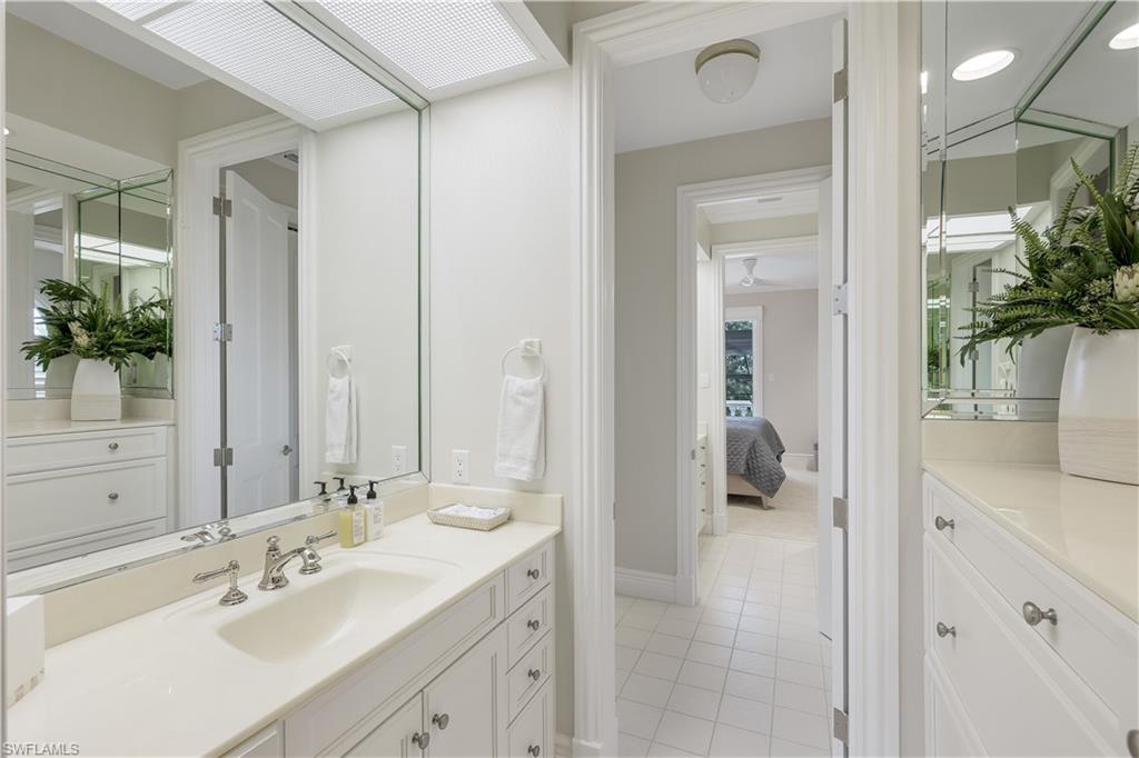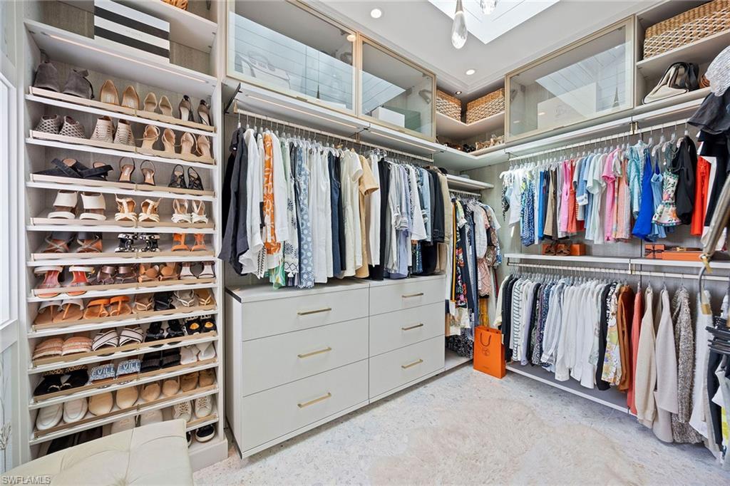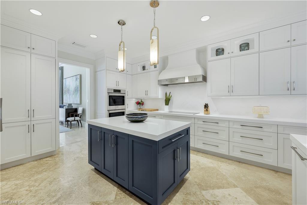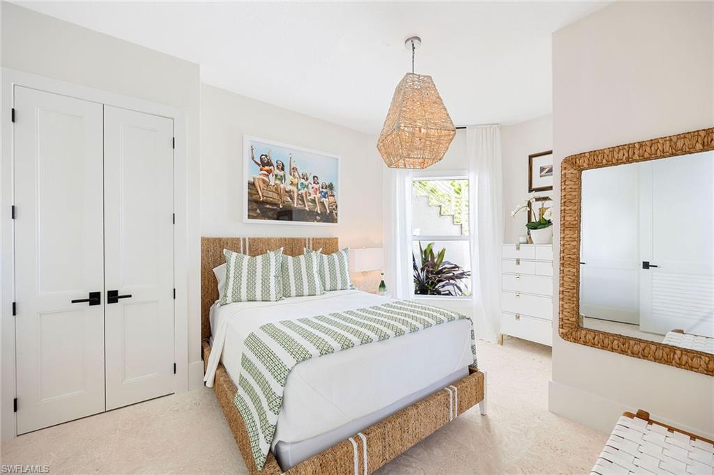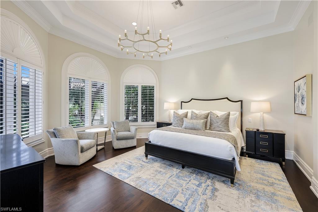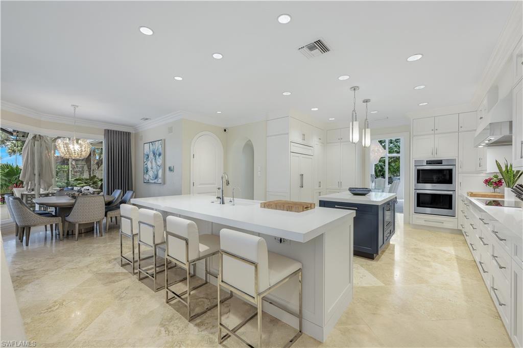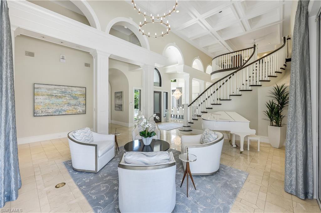 Luxury and sophistication are combined with world-class craftsmanship to deliver this award-winning STOCK custom home in the exclusive Bay Woods at Bonita Bay. Thoughtfully designed by New Architectura in collaboration with Wilfredo Emanuel Designs and Clive Daniel, this Cosmopolitan Chic home was the winner of the prestigious Sand Dollar Award and boasts a nearly $1,000,000 interior design package. Situated on a premium lot with unobstructed lake and golf course views, this home boasts 4 bedrooms, 6 bathrooms, bonus room, and an oversized 4-car garage with room for 5 plus cars. As you enter through the grand contemporary steel doors, you are immediately struck by the dramatic geometric ceiling details, white glass tile flooring, suspended lighting, illuminated quartz wine bar and glass-enclosed wine room. The Cosmopolitan theme is carried into the kitchen, featuring glass-faced cabinetry, quartz and semi-precious stone islands with waterfall, Wolf and SubZero built-in paneled appliances, Miele coffee machine, a walk-in pantry and more. The massive primary suite is nothing short of breathtaking. From its white oak flooring to the oversized seating area, dual walk-in closets, mirrored wall panels, textured wallpaper and built-in headboard with custom lighting. As you enter the primary bathroom, you will find two separate water closets, a free-standing tub, oversized shower with multiple heads, gorgeous tile and textured accent walls. Boasting more than 3,000SF of space, the outdoor area is a true focal point of the home and features countless upgrades such as electric shutters and screens, bug mist system, gas fireplace and separate fire pit area, massive outdoor kitchen with waterfall quartz counters, geometric ceiling details, white marble pavers, and pool bathroom. Enjoy the sunset views over the infinity edge gas-heated pool and spa. Continuing throughout the home, you will find that every guest bedroom is ensuite and features white oak flooring, walk-in custom closets and each has its own unique design cues such as custom draperies, wallpapers, ceiling and wall details. Showcased by a floor-to-ceiling glass entry, the opulent billiards/bonus room is sure to impress with its custom leather-padded wall and illuminated stone accents. The full-home Control4 smart system provides automated electric blinds throughout, smart lighting switches, indoor and outdoor built-in speakers, security system and more. Bonita Bay offers an array of outstanding amenities and optional memberships, from a private beach club to a full-service marina and multiple dining options. Experience premier golfing with five recently renovated Arthur Hills and Tom Fazio championship courses and three expansive practice facilities. Enjoy miles of scenic walking and biking trails, kayaking, canoeing, boat launch, state-of-the-art fitness center, an 18-court tennis and pickleball complex, numerous community parks and more.