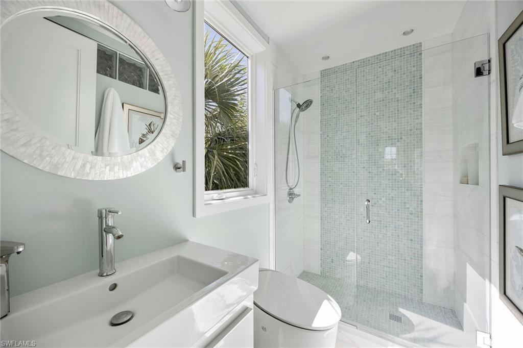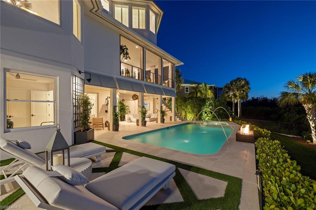 Beautifully remodeled & coastal contemporary beachfront cottage on a rare oversized lot with 63 feet of frontage, offering breathtaking, panoramic views of the Gulf. Ideally located on the highly sought-after Bonita Beach, this home features unobstructed vistas of the turquoise waters and pristine white sands from the ELEVATED POOL DECK. Boasting a bright, airy interior that exudes coastal charm, this home features soaring ceilings, gorgeous wood-look tile flooring throughout, and an abundance of natural light. It’s also equipped with hurricane impact windows and sliders, electric hurricane shutters, and a newer metal roof (2015). The spacious, open-concept floor plan includes 3 bedrooms, den off the primary bedroom, 3.5 bathrooms, a 3-car garage, and versatile ground-floor flex space. Step outside to your private backyard oasis, which features a RARE elevated pool and spa, along with multiple lounging areas and a wet bar with an ice maker — the perfect setting to savor stunning sunsets over the Gulf. The beautiful chef’s kitchen boasts pristine white cabinetry, granite countertops, and high-end appliances. The luxurious primary suite is a serene retreat, complete with a slider enclosed sunroom offering sweeping Gulf views and direct access to the pool deck. The spa-like ensuite bathroom features dual vanities, a spacious open shower, and a freestanding soaking tub for the ultimate relaxation. This exceptional home is ideally located close to top-rated restaurants and is just a 10-minute drive to the Mercato and Promenade, with Waterside Shops, Coconut Point, Naples 5th Avenue, and the International Airport all within easy reach.