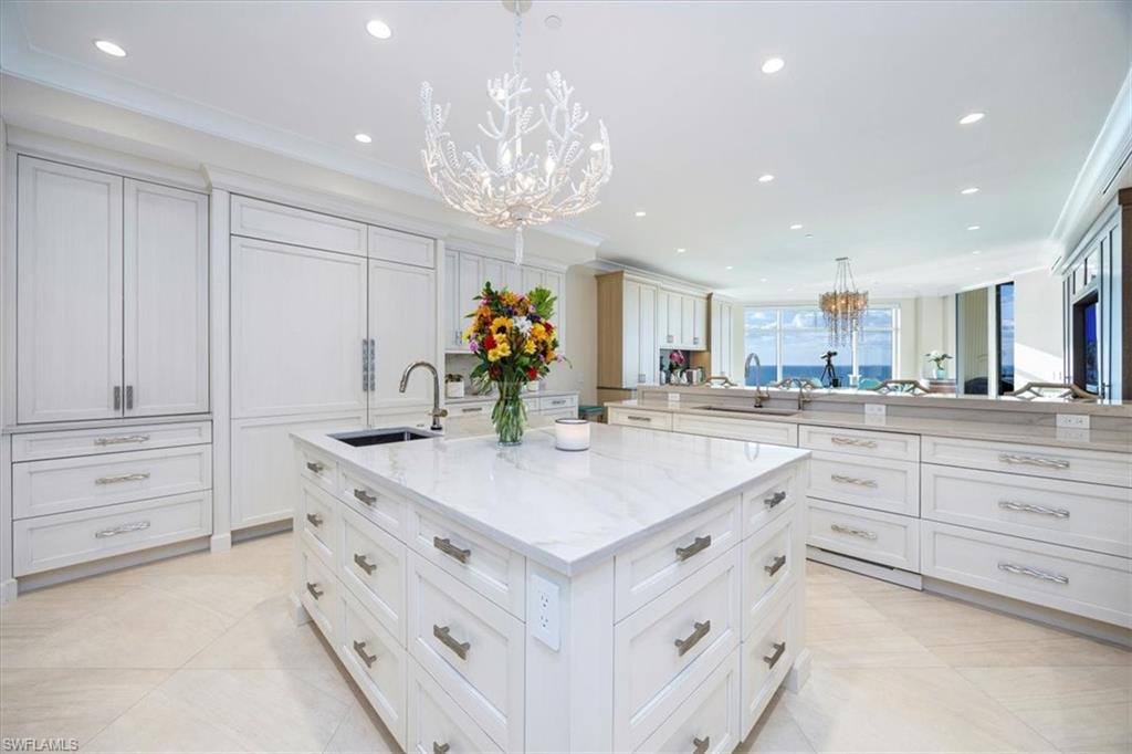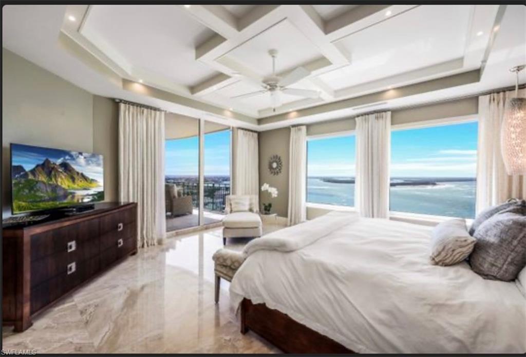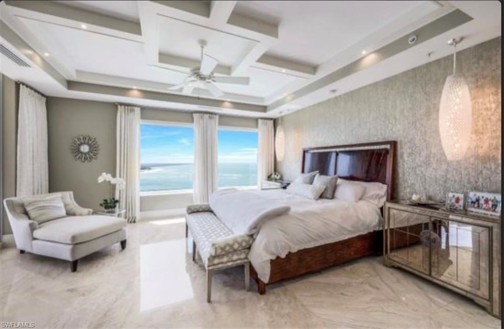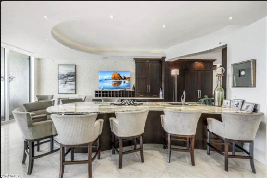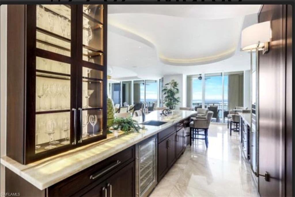 Veracruz represents the utmost in Luxurious Beachfront Living in Cape Marco. It’s all about the view and this residence has it all! Sparkling sunrises, dazzling sunsets and stunning nightscapes. This Sky-High Home is a JEWEL! Encompassing total Sophistication and Style. This gorgeous residence has been re-designed and is adorned with exquisite designer finishes and achieving a seamless blend of elegance and comfort, upon entrance you will be welcomed by stunning unobstructed long views of the turquoise waters of the Gulf of Mexico from the spacious living, dining and primary suite areas. The impressive gourmet kitchen complete with high-end luxury appliances, including double Wolf ovens with convection, wolf warming drawer, Viking gas range with 8 burners, Thermador paneled refrigerator and freezer, custom cabinetry and stunning hardware, creates a perfect setting for entertaining. The living room has a custom book-matched onyx and wood built-in with integrated lighting, vapor fireplace and coffered ceilings. It also has a surround system with subwoofer and center channel sound bar with Denon Audio system and four invisible speaker's connected to a Sony 77" Bravia 4k TV. The wet bar has a wall mounted Brizo faucet with walnut handle and contains a sink for chilling your wine. There are two subzero paneled wine refrigerators, A gorgeous Palecek chandelier in the dining room. The primary bedroom has added cabinetry with lighting. The primary bath includes a steam shower with aromatherapy, Brizo plumbing fixtures, Americh Spa tub with "champagne bubble jets. Here are a few additional features: Sound system with invisible speakers in most areas, whole-home water filtration, and water softening system. Programmable window shades system. No detail has been overlooked! Book your showing soon as this will not last long! Veracruz has 24-hour concierge and it is a gated community.