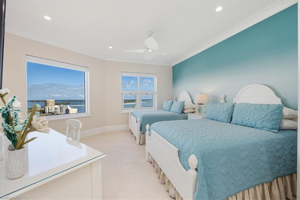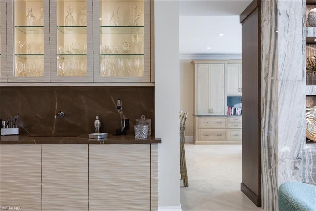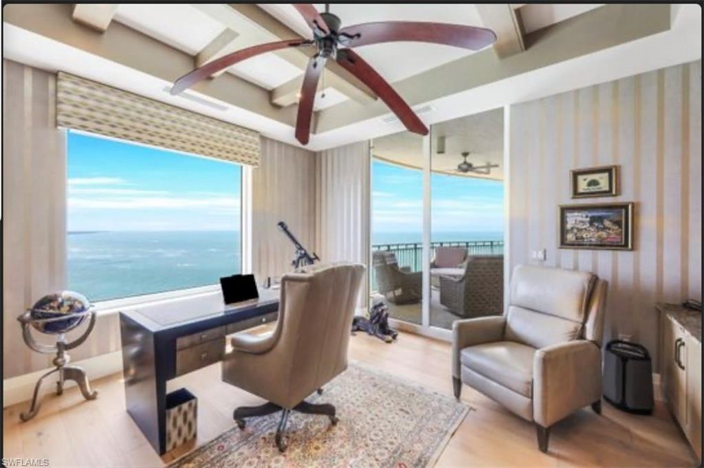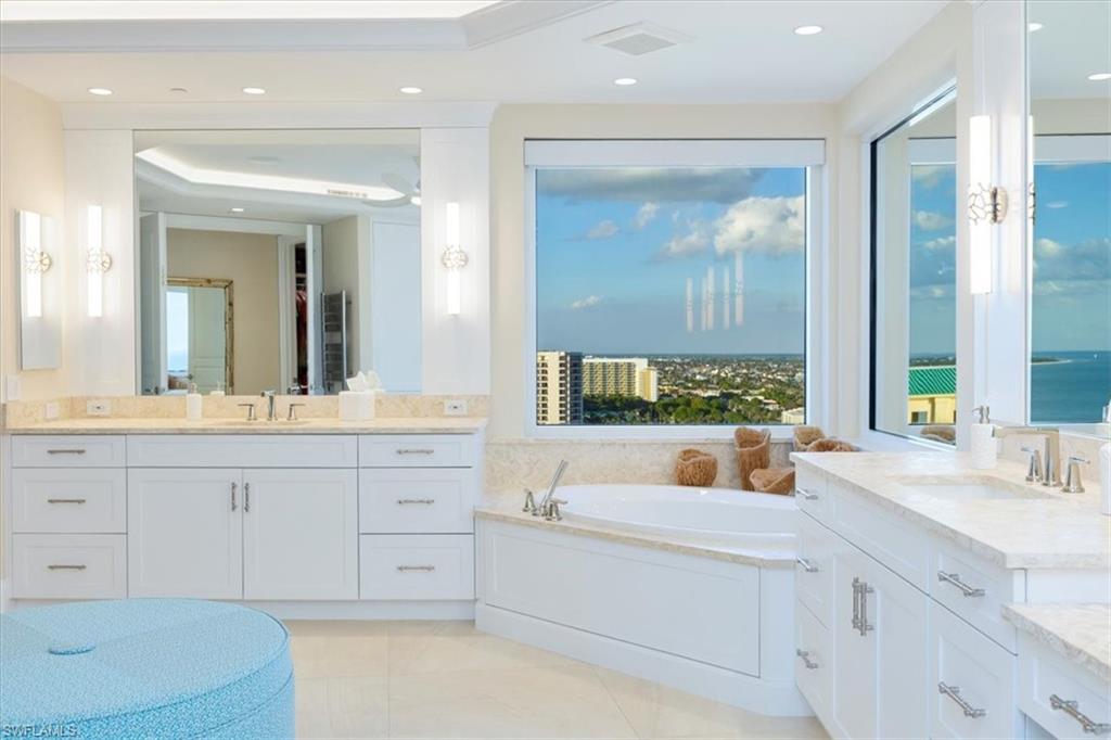 Veracruz represents the utmost in Luxurious Beachfront Living in Cape Marco. It’s all about the view and this residence has it all! Sparkling sunrises, dazzling sunsets and stunning nightscapes. This Sky-High Home is a JEWEL! Encompassing total Sophistication and Style. This gorgeous residence has been re-designed and is adorned with exquisite designer finishes and achieving a seamless blend of elegance and comfort, upon entrance you will be welcomed by stunning unobstructed long views of the turquoise waters of the Gulf of Mexico from the spacious living, dining and primary suite areas. The impressive gourmet kitchen complete with high-end luxury appliances, including double Wolf ovens with convection, wolf warming drawer, Viking gas range with 8 burners, Thermador paneled refrigerator and freezer, custom cabinetry and stunning hardware, creates a perfect setting for entertaining. The living room has a custom book-matched onyx and wood built-in with integrated lighting, vapor fireplace and coffered ceilings. It also has a surround system with subwoofer and center channel sound bar with Denon Audio system and four invisible speaker's connected to a Sony 77" Bravia 4k TV. The wet bar has a wall mounted Brizo faucet with walnut handle and contains a sink for chilling your wine. There are two subzero paneled wine refrigerators, A gorgeous Palecek chandelier in the dining room. The primary bedroom has added cabinetry with lighting. The primary bath includes a steam shower with aromatherapy, Brizo plumbing fixtures, Americh Spa tub with "champagne bubble jets. Here are a few additional features: Sound system with invisible speakers in most areas, whole-home water filtration, and water softening system. Programmable window shades system. No detail has been overlooked! Book your showing soon as this will not last long! Veracruz has 24-hour concierge and it is a gated community.