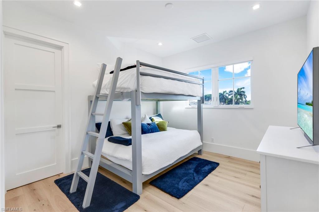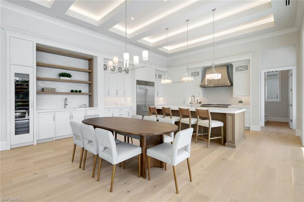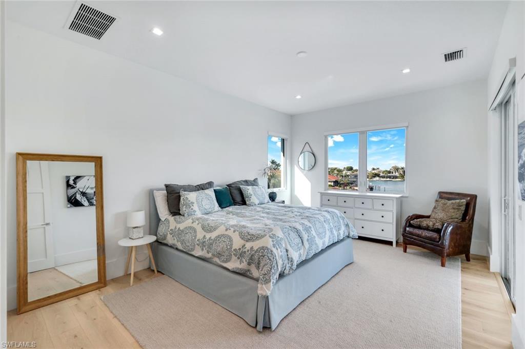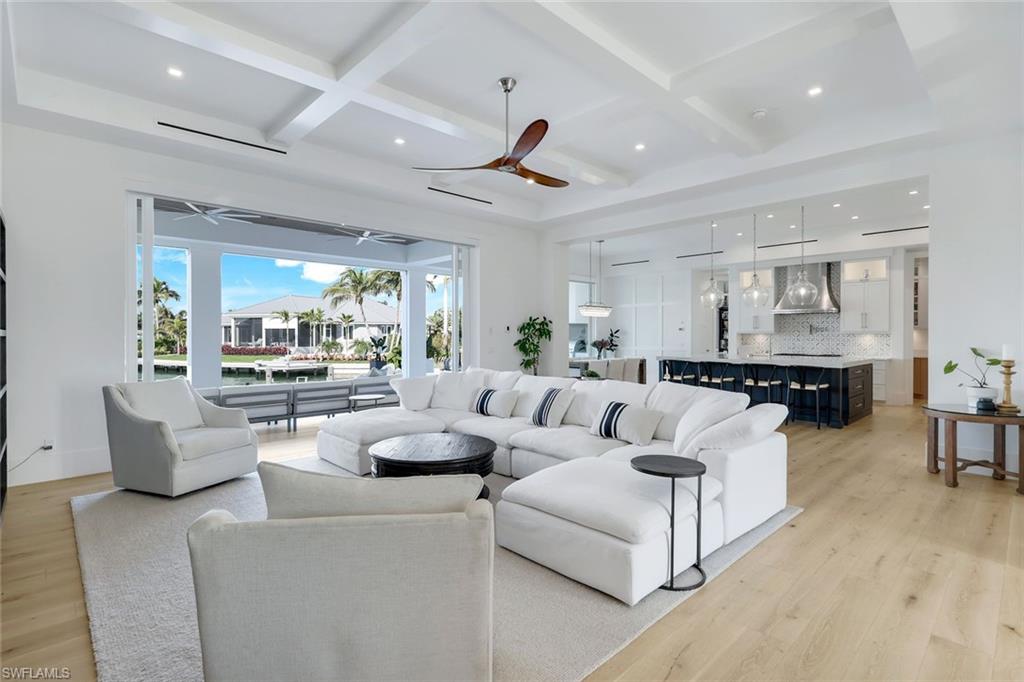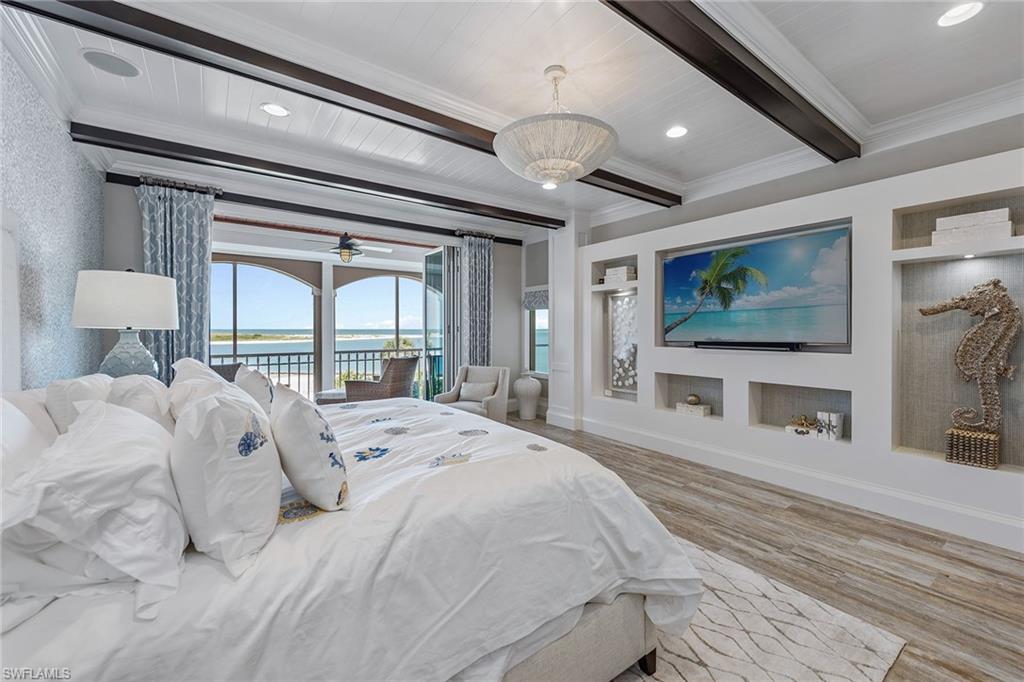 Luxurious, new, custom-built home on a .5-acre lot with southern exposure and stunning wide water views overlooking Fredericks Bay. In mint condition, this home has designer finishes throughout and features four bedrooms plus a large office/den, five full baths, resort-style pool plus integrated spa, elevator, four-car garage (one with air conditioning) with additional room for lifts, 60,000-pound boat lift and two platform lifts for jet skis and a tender. Chef-style kitchen with Sub-Zero & Wolf appliances, custom cabinetry, quartz counters, designer fixtures and a walk-in pantry. Adjacent to the kitchen is a fabulous dining area with a built-in wet bar and an oversized Sub-Zero wine cellar. Expansive great room with soaring ceilings, built-ins, intricate ceiling details and views in every direction. Designed with a coastal lifestyle in mind, the home has sliding pocket doors to optimize for seamless indoor/outdoor living. Outdoor entertaining is made easy with a custom bar/summer kitchen, sprawling lanai, fireplace and hurricane shutters plus electronic screens. Primary bedroom on the first floor with dual closets and spa-like bathroom with dual shower heads and soaker tub. The second floor has a great room with incredible bay views, three sizable bedrooms, three full baths, a bar and large lanai. Other features include wide plank white oak flooring throughout, Uxari Home Security System, elevator, laundry room with two full-size washer and dryers, sink, ample storage and a generator. Direct access out to the Gulf in just minutes. Island living is calling your name!