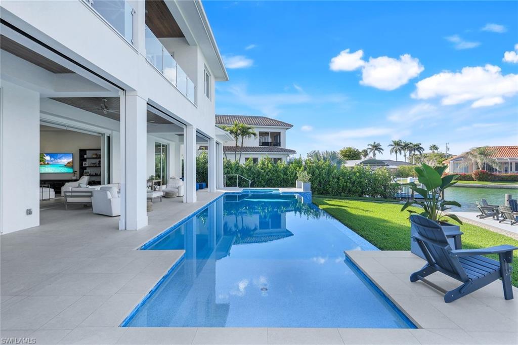 Immerse yourself in the luxury of this spectacular newly built and soon to be FULLY DECORATOR FURNISHED home on Marco Island, designed to embrace the beauty of converging water views with a coveted south exposure. This architectural gem promises to offer a seamless blend of elegance and waterfront living. situated to maximize the panoramic water views , offering a serene picturesque backdrop. Brand new design from Aqua Custom Homes with a modern aesthetic with clean lines and expansive windows ensuring that every room captures the essence of water front living. An outdoor area designed for relaxation and entertainment, featuring a pool, spa , outdoor kitchen and multiple lounging areas to soak in the southern sun! NOW being sold FURNISHED!