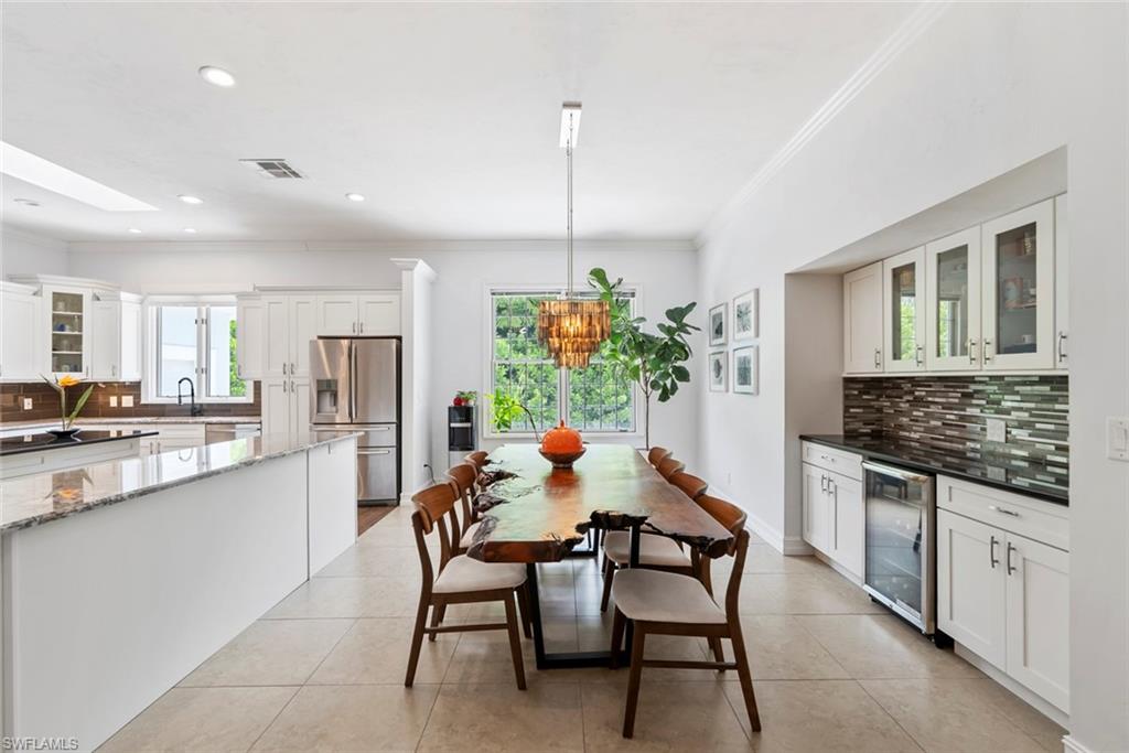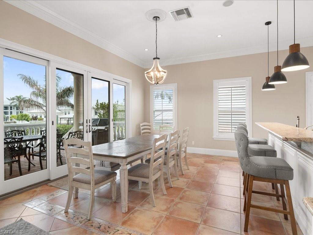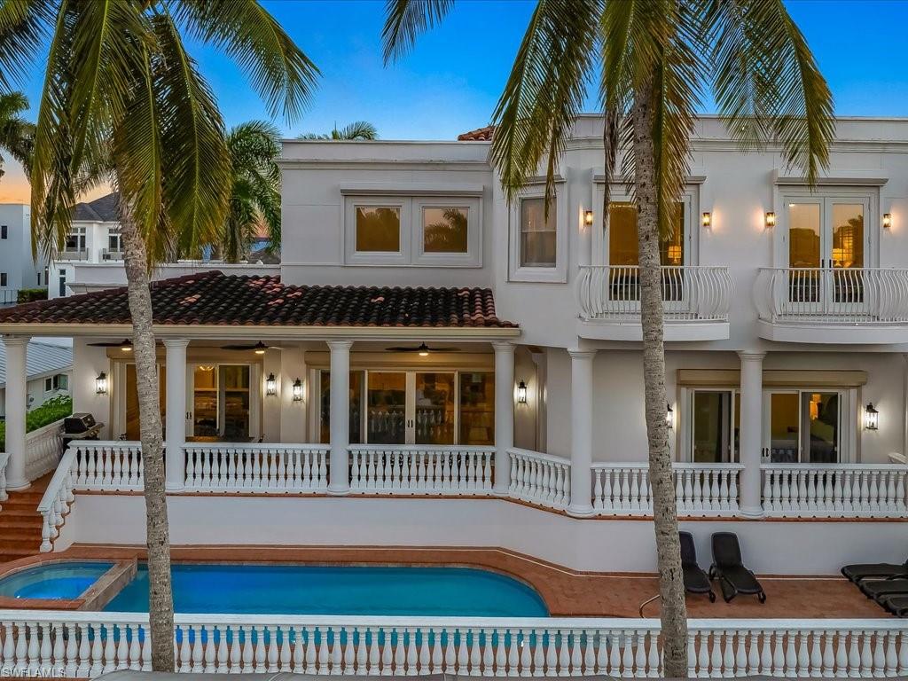 A rare gem in Naples, this 5-bedroom, 4 full-Bath / 1 half-bath estate offers the best of both worlds: Direct Gulf Boat Access with a 27,000-pound COVERED BOAT LIFT right out your back door & exclusive Vanderbilt Beach PRIVATE BEACH ACCESS just across Gulf Shore Drive. Nestled in an exclusive enclave of only three peninsula streets that uniquely combine direct beach and boat access, opportunities like this—a boater’s dream and beach lover’s paradise—are truly rare. Spanning 4,050 sq. ft. of living space (5,340 total), the home features two spacious primary suites (one on each floor), an open-concept kitchen, a formal dining area, soaring ceilings, a home office, and a versatile 'bunk room.' Outside, enjoy the ultimate Florida lifestyle with a luxurious pool and spa, along with a Boat Dock and Lift that make getting out on the water effortless. The proximity to upscale dining, shopping, and art galleries puts the Naples lifestyle right at your fingertips. ***INVESTORS: Excellent Rental Income Potential***