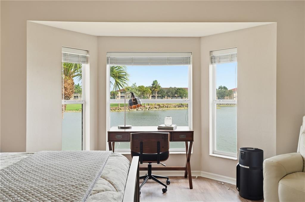 Step into coastal elegance with this stunning 2025 RENOVATED FIRST-FLOOR CONDO offering serene lakefront living in one of Naples’ most desirable areas. Thoughtfully designed and beautifully upgraded, this residence blends modern sophistication with relaxed Florida comfort. Inside, the OPEN-CONCEPT LAYOUT is enhanced by brand-new designer finishes, a fresh contemporary color palette, and abundant natural light. The reimagined kitchen features quartz countertops, custom cabinetry, and new stainless steel appliances, flowing seamlessly into the main living area where TRANQUIL LAKE VIEWS create an inviting backdrop. Wake up each day to the water and wildlife from the spacious primary suite, complete with a newly redesigned ensuite bath. The guest bedroom and bath offer equal comfort and style—perfect for visitors. Enjoy peaceful mornings or sunset evenings on the SCREENED LANAI overlooking the lake, your own private retreat just steps from the water. A RARE PRIVATE GARAGE provides exceptional convenience and storage, while the first-floor location offers effortless access with no stairs. The community enhances the lifestyle with a large, RESORT-STYLE POOL, ideal for lounging, swimming, or socializing in the Florida sunshine. Located minutes from Naples’ pristine beaches, top-tier dining, shopping, and golf courses, this home is truly MOVE-IN READY—a beautifully updated, low-maintenance escape with exceptional views and amenities. Make this your personal residence, your vacation oasis, or rental property today! Welcome home, TURN-KEY OPTIONAL.