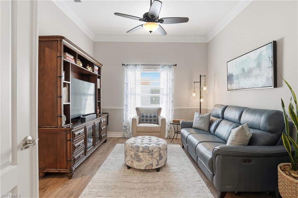 Welcome to 6161 Waxmyrtle Way—a beautifully refreshed pool home in one of Naples’ most sought-after neighborhoods. Freshly painted inside and out, this residence offers impact-resistant windows and doors, combining style with storm-ready peace of mind. The home features a spacious, light-filled layout centered around a private courtyard-style pool, providing the perfect backdrop for entertaining or relaxing in total privacy. High ceilings, oversized windows, and skylights invite natural light into every corner of the living space. This open floor plan includes generous guest rooms, a versatile den, and a large laundry room. The primary suite is its own retreat, complete with custom walk-in closets, dual vanities, a walk-in shower, and a freestanding soaking tub. An oversized garage offers extra space for storage or hobbies. Enjoy a fenced backyard ideal for pets, a newer roof and A/C system, and a low HOA of just $72/month. Perfectly situated just minutes from top-rated schools, Naples’ world-class beaches, fine dining, and shopping, this home is ideal for families, seasonal residents, or investors seeking long- or short-term rental potential. Homes in this quiet, centrally located community rarely hit the market—don’t miss your opportunity to own a move-in-ready home in the heart of Naples. No history of hurricane damage.