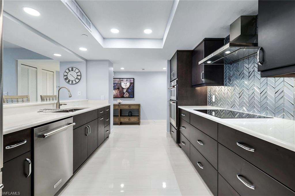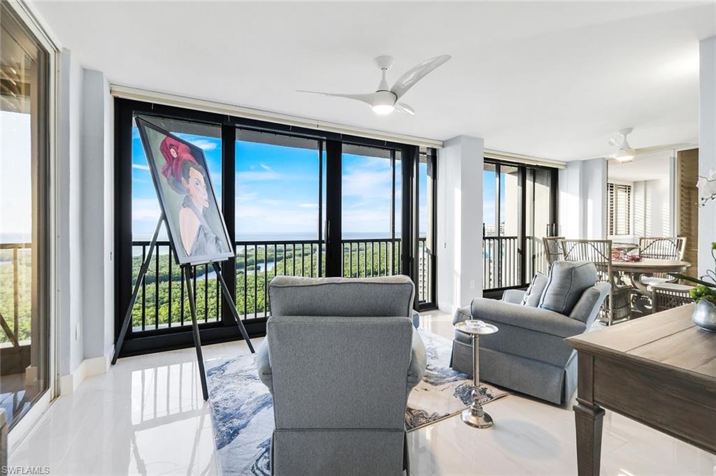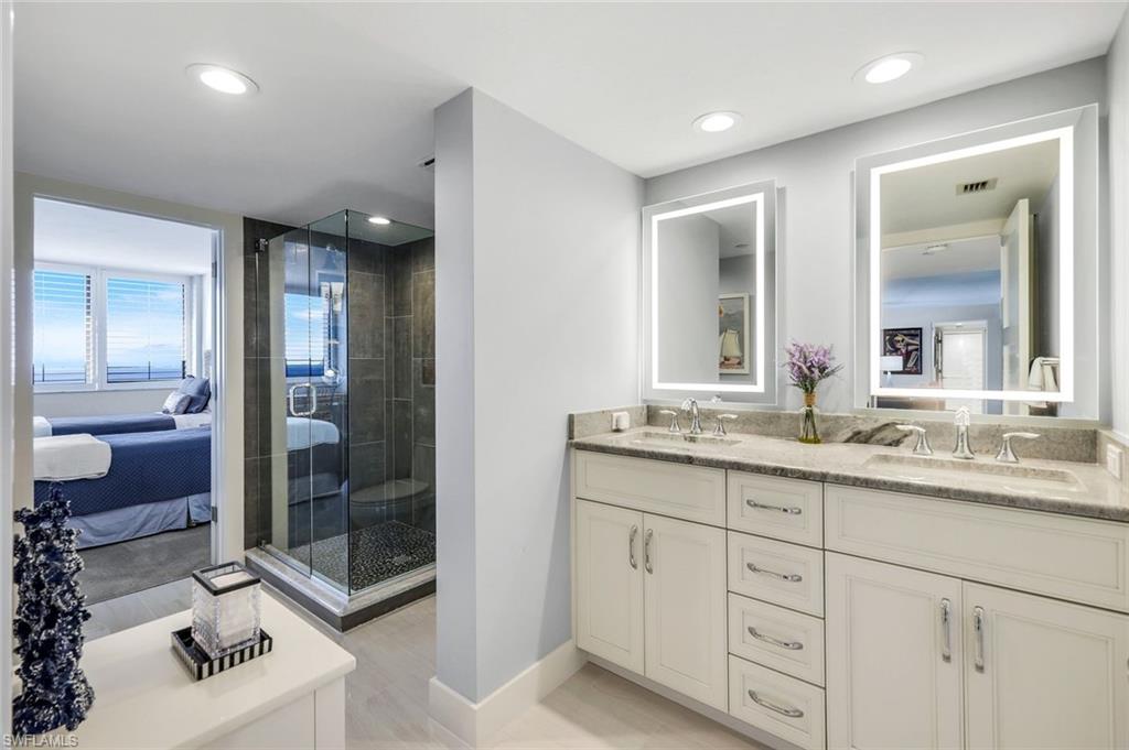 Breathtaking view from this 18th floor condo is only a small part of what makes this Stratford two bedroom, two bathroom 2009 sq ft condo truly unique. Totally renovated to the highest standards and fully furnished with designer touches , make this a move in ready condo a perfect Naples getaway. Gleaming tile, upscale kitchen appliances including all new Kitchen Aid upscale appliances including induction cooktop, microwave, refrigerator refrigerator. Custom quartz countertops, custom sink and custom cabinetry, breakfast bar and dining area all open to the gorgeous view maximizes all of great room living that fits an upscale lifestyle. Split bedrooms offer maximum privacy and flexibility and visibility to the view. Spacious bathroom features a gleaming glass shower, custom soaking bathtub ,dual sink vanity with custom lighting and cabinetry. Master bedroom boast three ample closets including a linen closet. Washer/dryer adjacent to master suite. Guest suite has an ensuite bathroom that doubles as a powder room A wine cooler and bar are incorporated into the great room for easy entertaining Designer furnishings in every room completes the package. Every inch of this 2009 square foot condo lives large. One secure indoor parking, ample outdoor for 2nd car. Walkability is key from this Stratford high rise. Miles and miles of nature trails, and yet just blocks from upscale dining and shopping including Hermes, Saks Fifth Ave, Tiffany, and coming soon a Restoration Hardware. The Stratford boasts a tennis court, pickleball court, and one of the largest swimming pools in Pelican Bay. A recently updated Stratford fitness center in addition to all the Pelican Bay amenities such as 18 tennis courts, 20 pickleball courts, a community center offering exercise classes, private fitness trainers make Pelican Bay unique and the perfect condo for an active lifestyle. Just minutes to Whole Foods, Trader Joes, Mercato, two movie theaters and shopping. Pelican Bay has 18 tennis courts, a new 20 court pickleball facility, complimentary kayaks, sea kayaks, canoes and paddle boards all part of the Pelican Bay package. Pelican Bay has its own Publix, Ace Hardware, CVS, charming restaurants and shops. To top off these amenities are two private beach clubs offering two casual dining restaurants, beach attendants and morning exercise classes . World class entertainment awaits you at Artis-Naples, one of several entertainment venues in Naples, a short walk from the condo. Tram service to the two beach restaurants are just out the back door of The Stratford. The unit boasts impact glass sliders and windows. Stratford has completed major building upgrades including a new roof in 2024, all electrical panels replaced in 2025, flood protection systems and mandatory mandated inspections. No assessments upcoming. It has all been upgraded to the highest standards. A total package like no other in Naples. SEE VIDEO AND REMARKS