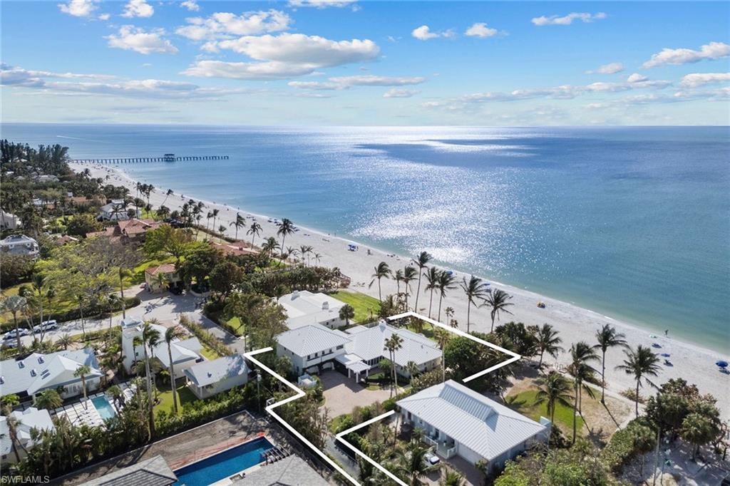 Exclusive Naples property featuring approximately 108 feet of direct beach frontage along the breathtaking Gulf of Mexico with private flag driveway entrance from 7th Avenue South. With approximately 4,249 square feet of total living space, this inviting cottage includes six bedrooms, seven full baths and a spacious two-car garage. The interior offers ample room for gathering and picturesque water views throughout. This is a rare opportunity to experience the quintessential beachfront lifestyle in a tranquil yet prime Old Naples location.